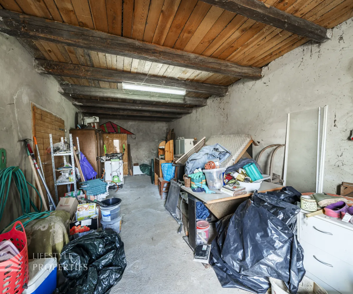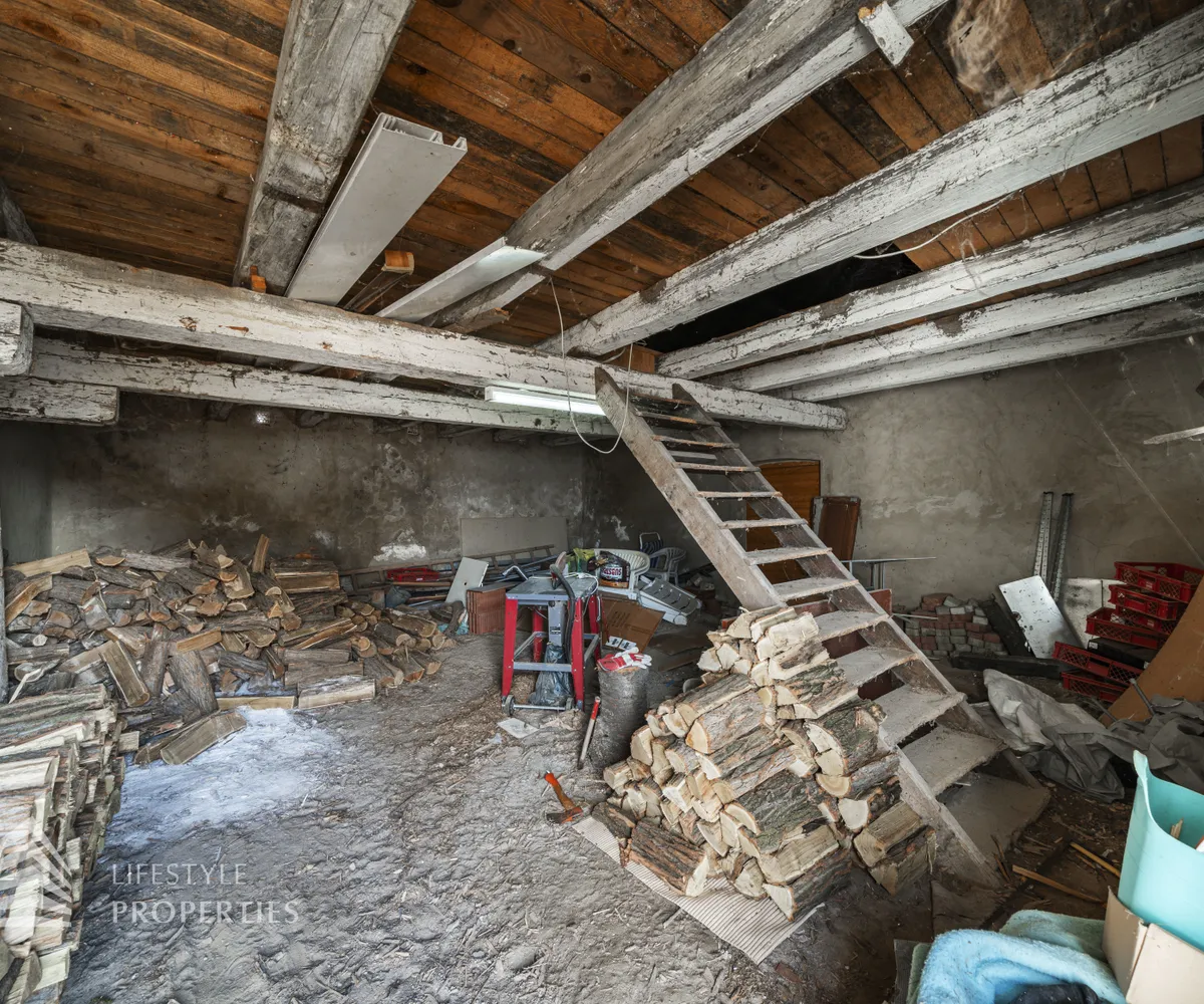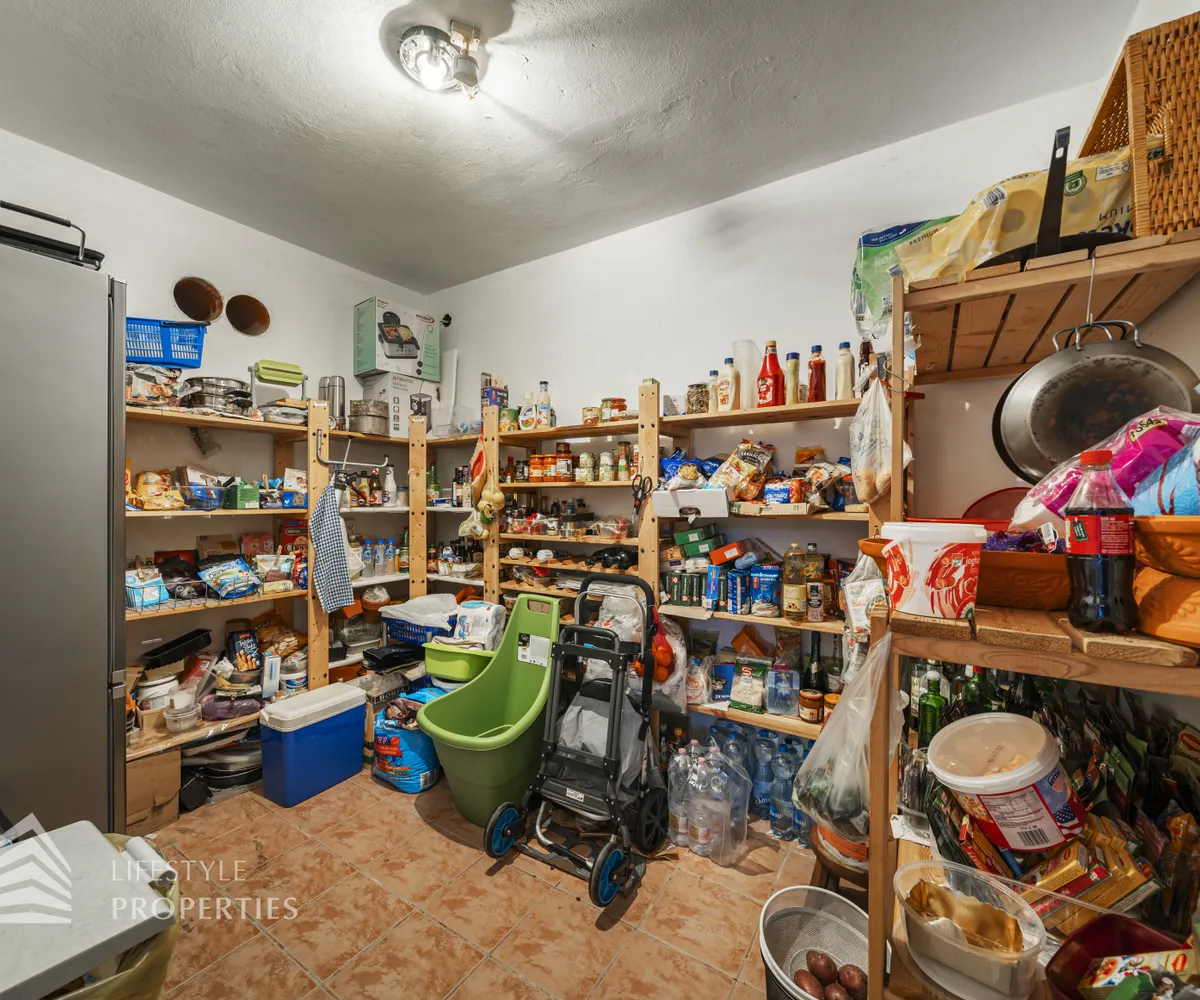 Sie betreten das Haus und befinden sich im Erdgeschoss, welches sich auf eine Wohnküche, ein Schlafzimmer, ein weiteres Zimmer, ein Bad, eine große Vorratskammer, einen Abstellraum sowie eine separate Toilette aufteilt. Die großzügige Wohnküche ist mit schönen Fliesen ausgekleidet und erscheint durch die großen Fenster sehr hell und einladend. Die Einbauküche ist mit allen notwendigen Geräten ausgestattet und verfügt über viel Stauraum. Gegenüber befindet sich der gemütliche Essbereich mit Esstisch und Kamin. Etwas vom Essbereich abgetrennt finden Sie den Wohnbereich mit gemütlicher Sitzmöglichkeit vor. Neben der Küche bietet auch die geräumige Vorratskammer viel Platz für Ihre Lebensmittel. Das Schlafzimmer ist mit einem Doppelbett, einem Kleiderschrank sowie einer Couch ausgestattet und wird durch das große Fenster mit viel Tageslicht versorgt. Das dritte Zimmer im Erdgeschoss ist mit mehreren Schränken ausgestattet und bietet vielerlei Nutzungsmöglichkeiten. Das Badezimmer in diesem Stockwerk ist mit einer Badewanne, einem Waschbecken mit Unterschrank, einem großen Spiegel, einem Handtuchtrockner sowie einem Fenster ausgestattet.