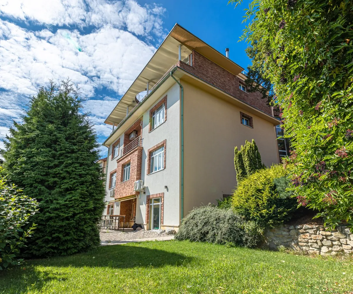 Diese wunderschöne Traumvilla mit einer Wohnnutzfläche von ca. 725,25 m² ( Grundfläche ca. 1000 m²),17 Zimmern, 2 Balkonen, 2 Terrassen, einem Garten, 3 Badezimmern und einer separaten Toilette befindet sich in toller Lage