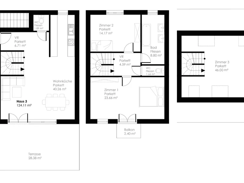 Zusätzlich zum Haus sind 2 Stellplätze zum Kaufpreis von je 14.000€ verpflichtend zu erwerben.