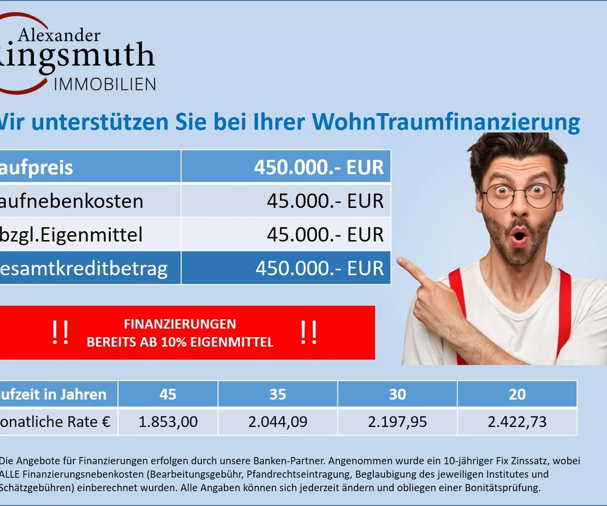 *Der Vertrag kommt nicht mit der INFINA Credit Broker GmbH zustande. Das Objekt wird von einem externen Immobilienunternehmen angeboten. Allfällige aus dem Vertragsabschluss resultierende Rechte sind ausschließlich gegenüber dem anbietenden Immobilienunternehmen geltend zu machen. Wir weisen Sie darauf hin, dass die gemachten Angaben und Informationen lediglich unverbindliche Vorabinformationen sind und daher ohne Gewähr erfolgen.