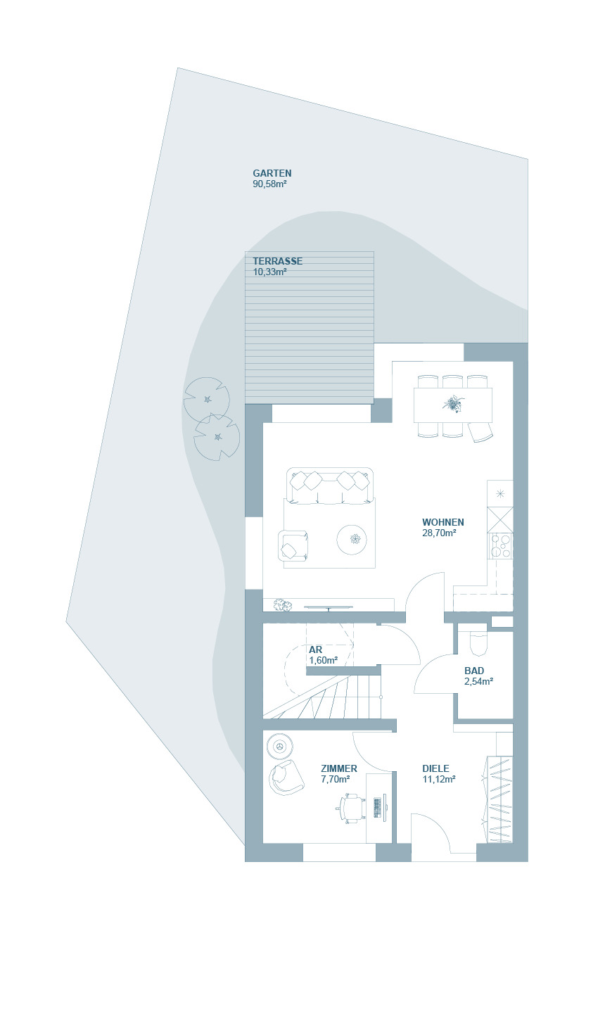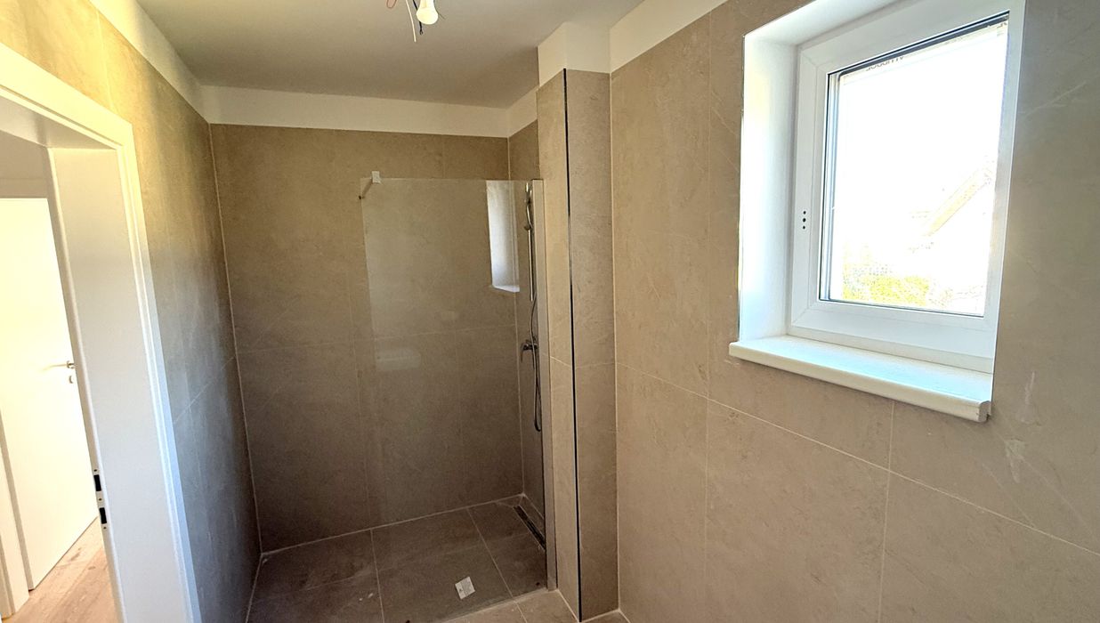 Noch vor dem Betreten Ihres neuen Zuhauses werden Sie vom einladenden Außenbereich und der großen modernen Eingangstür empfangen. Im schicken Vorraum angekommen, erblickt man sofort den hell strahlenden Wohnbereich mit Zugang zur Terrasse und dem Garten. Große Fensterflächen sorgen für natürliche Belichtung über den ganzen Tag verteilt. Die offene Küche bietet viel Platz für gemeinsames Kochen und Genießen. Ergänzend verfügt das Erdgeschoß noch über kleines Badezimmer mit WC, einen Abstellraum und einen zusätzlichen geräumigen Raum , der sich ideal als Büro anbietet. Über den Stiegenaufgang im Vorraum gelangt man vom Erdgeschoß ins Obergeschoß.