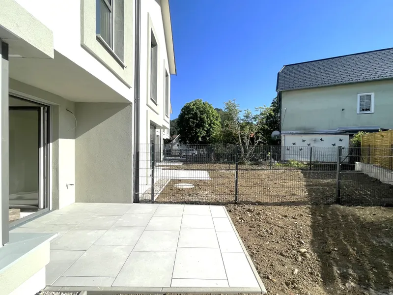 Der herrliche Garten mit Terrasse bietet bis in die Abendstunden Sonne. Der idyllische alte Baum auf dem allgemeinen Areal bereitet diesem Projekt einen ganz besonderen Charme und sorgt zudem für natürliche Beschattung. Wer es gerne etwas schattiger mag, für den sind die