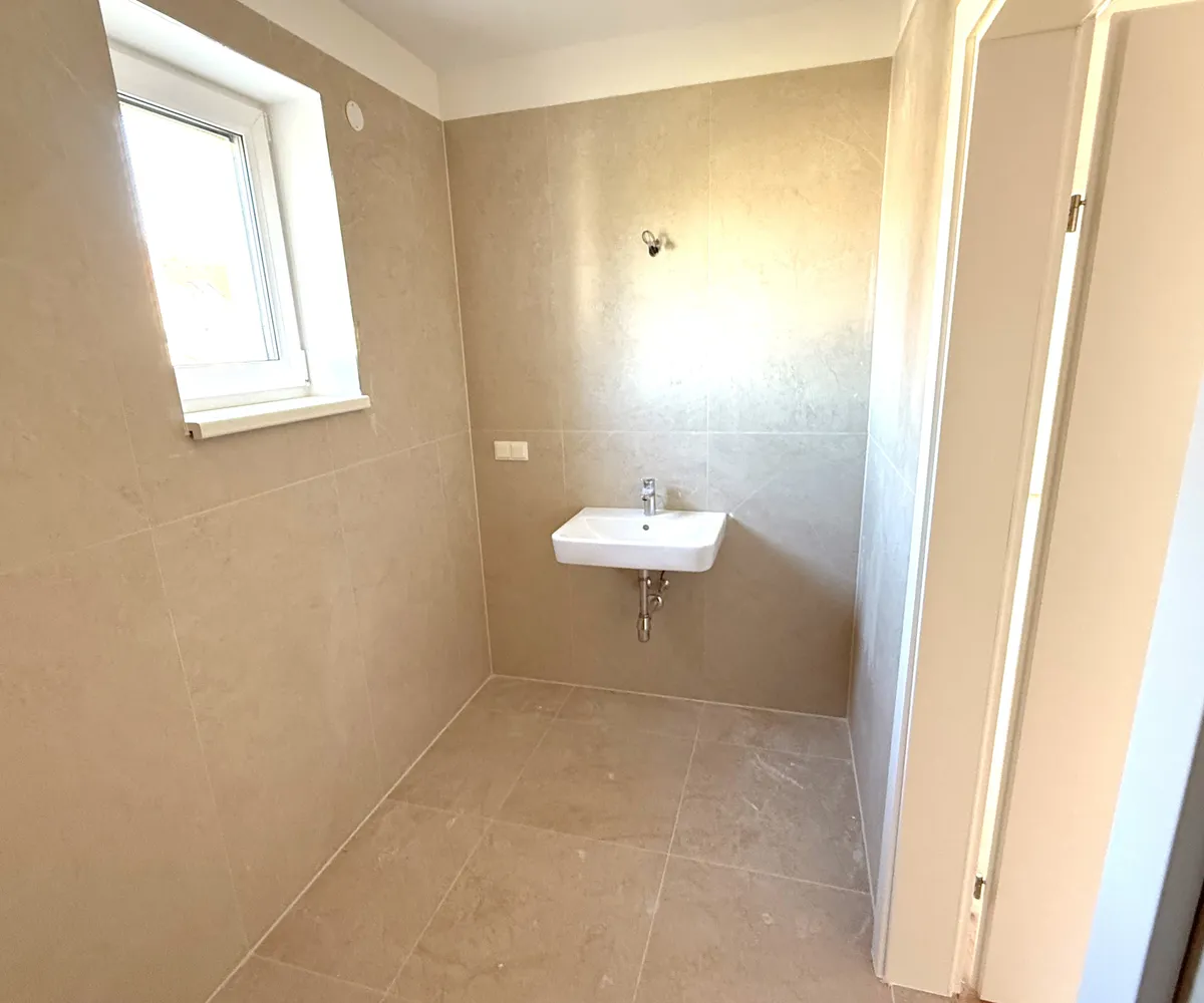 Noch vor dem Betreten Ihres neuen Zuhauses werden Sie vom einladenden Außenbereich und der großen modernen Eingangstür empfangen. Im schicken Vorraum angekommen, erblickt man sofort den hell strahlenden Wohnbereich mit Zugang zur Terrasse und dem Garten. Große Fensterflächen sorgen für natürliche Belichtung über den ganzen Tag verteilt. Die offene Küche bietet viel Platz für gemeinsames Kochen und Genießen. Ergänzend verfügt das Erdgeschoß noch über kleines Badezimmer mit WC, einen Abstellraum und einen zusätzlichen geräumigen Raum , der sich ideal als Büro anbietet. Über den Stiegenaufgang im Vorraum gelangt man vom Erdgeschoß ins Obergeschoß.