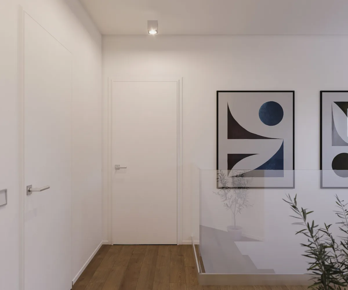 Noch vor dem Betreten Ihres neuen Zuhauses werden Sie vom einladenden Außenbereich und der großen modernen Eingangstür empfangen. Im schicken Vorraum angekommen, erblickt man sofort den hell strahlenden Wohnbereich mit Zugang zur Terrasse und dem Garten. Große Fensterflächen sorgen für natürliche Belichtung über den ganzen Tag verteilt. Die offene Küche bietet viel Platz für gemeinsames Kochen und Genießen. Ergänzend verfügt das Erdgeschoß noch über kleines Badezimmer mit WC, einen Abstellraum und einen zusätzlichen geräumigen Raum , der sich ideal als Büro anbietet. Über den Stiegenaufgang im Vorraum gelangt man vom Erdgeschoß ins Obergeschoß.
