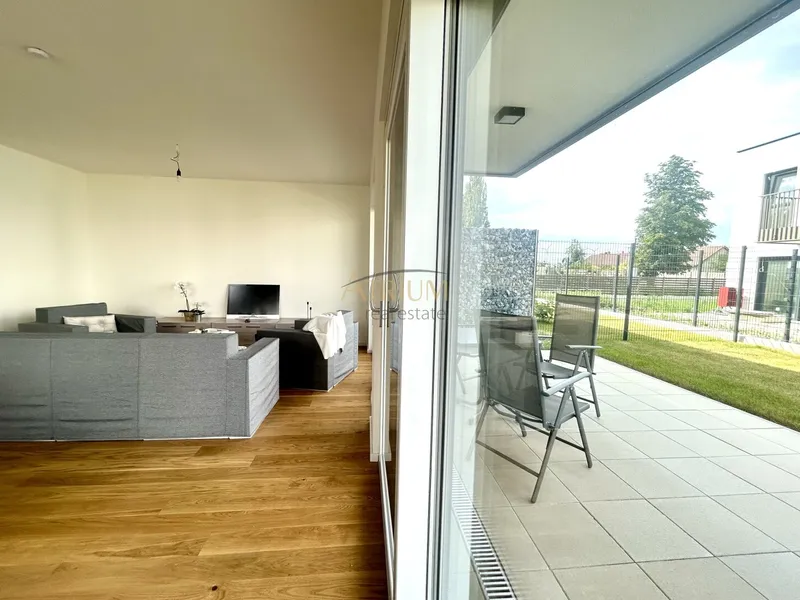 Der herrliche Garten mit Terrasse bietet bis in die Abendstunden Sonne. Der idyllische alte Baum auf dem allgemeinen Areal bereitet diesem Projekt einen ganz besonderen Charme und sorgt zudem für natürliche Beschattung. Wer es gerne etwas schattiger mag, für den sind die