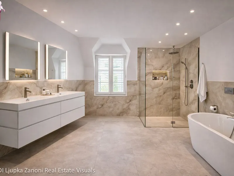 Oben befinden sich drei weitere Zimmer , die getrennt voneinander über den Flur begehbar sind. Auch ein wunderschönes Badezimmer im eleganten Design ist hier zu finden. Die Raumaufteilung ist modern und funktional - perfekt für Familien, Paare oder Singles, die mehr als nur Standard suchen.