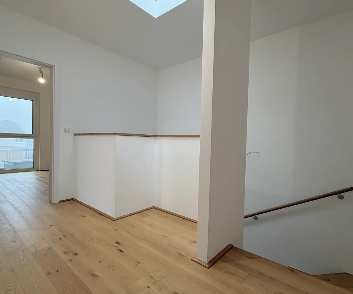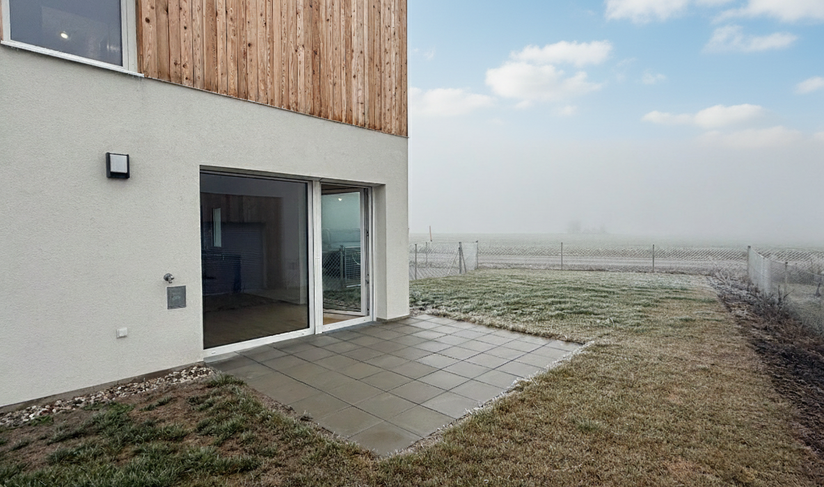 Großzügige, 3-fach-verglaste Fensterflächen in allen Räumen sowie eine Raumhöhe von 2,60 m schaffen ein helles, freies Wohngefühl. Der südlich bzw. südwestlich ausgerichtete Garten – bei Haus 3 rund 121,77 m² – garantiert viele Sonnenstunden und lädt zum Verweilen ein. Durch die leicht versetzte Bauweise bleibt auch im eigenen Garten die Privatsphäre gewahrt. Zwei Autoabstellplätze runden das Angebot ab.