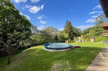 Das gepflegte Gartenareal mit Pool , Gartenhütten, großzügigen Terrassenflächen sowie Altbaumbestand bietet sowohl hohen Freizeitwert als auch einen attraktiven Rahmen für weitere bauliche Entwicklung .