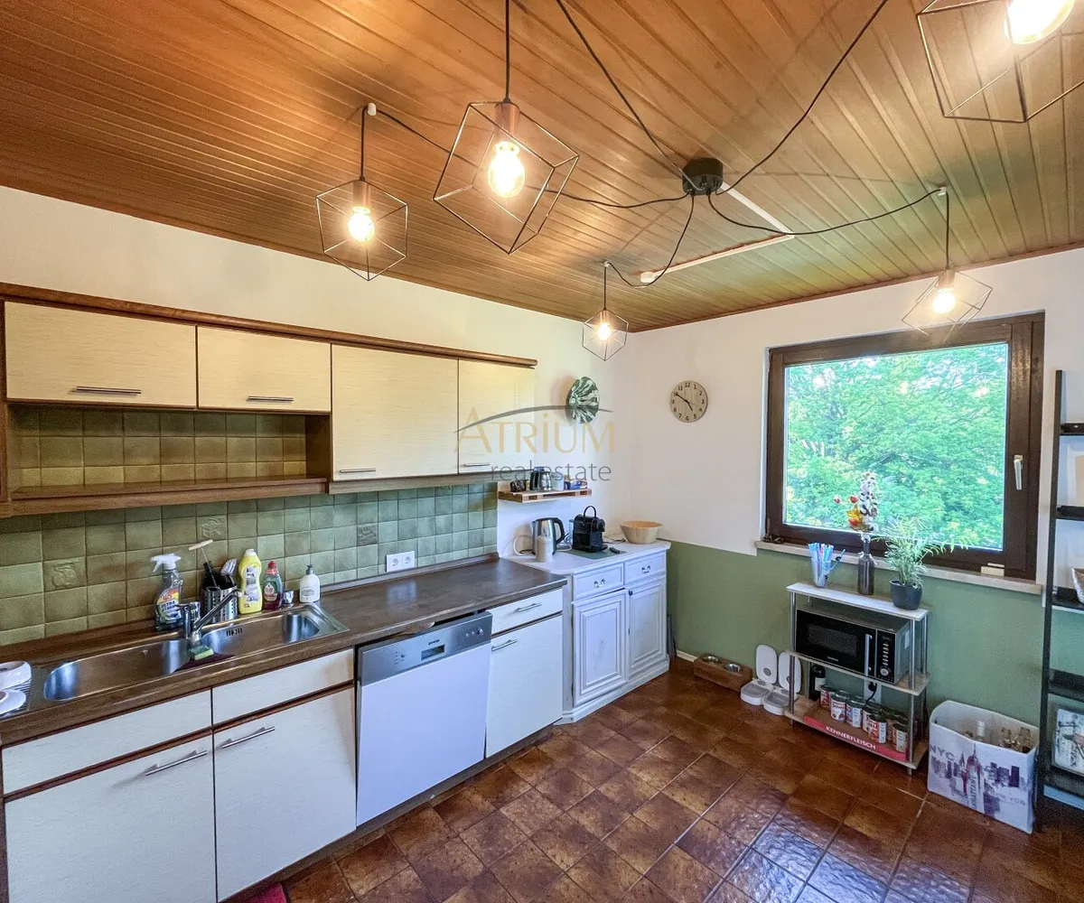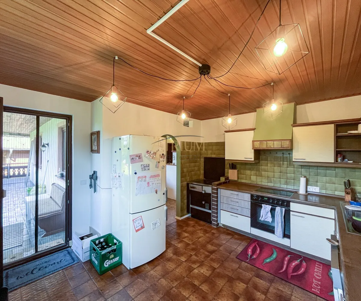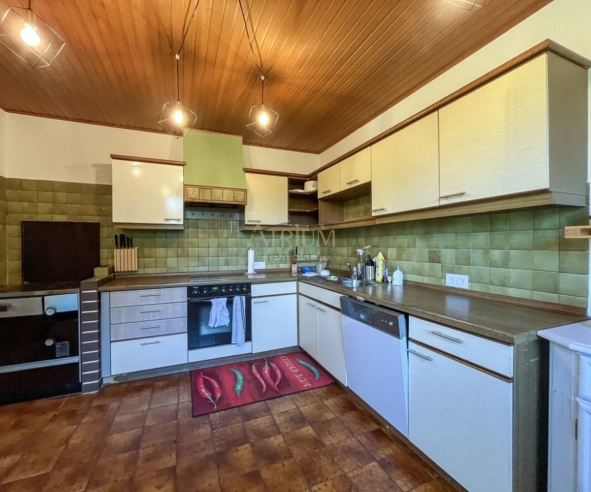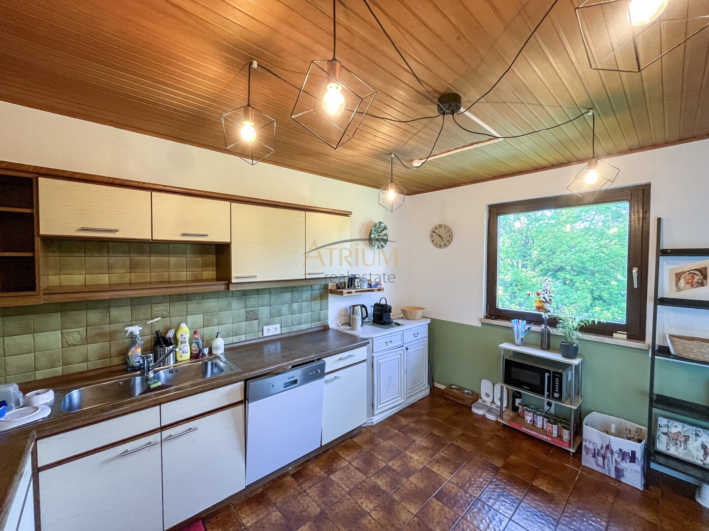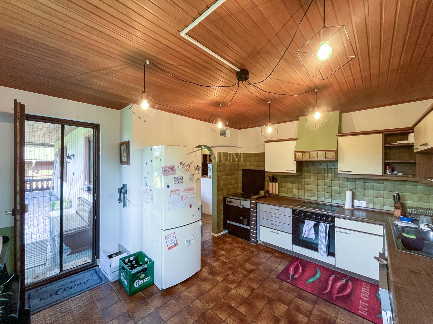 Küche ( 10 m² ) mit Ausgang auf die große Gartenterrasse ( ca. 20 m² )