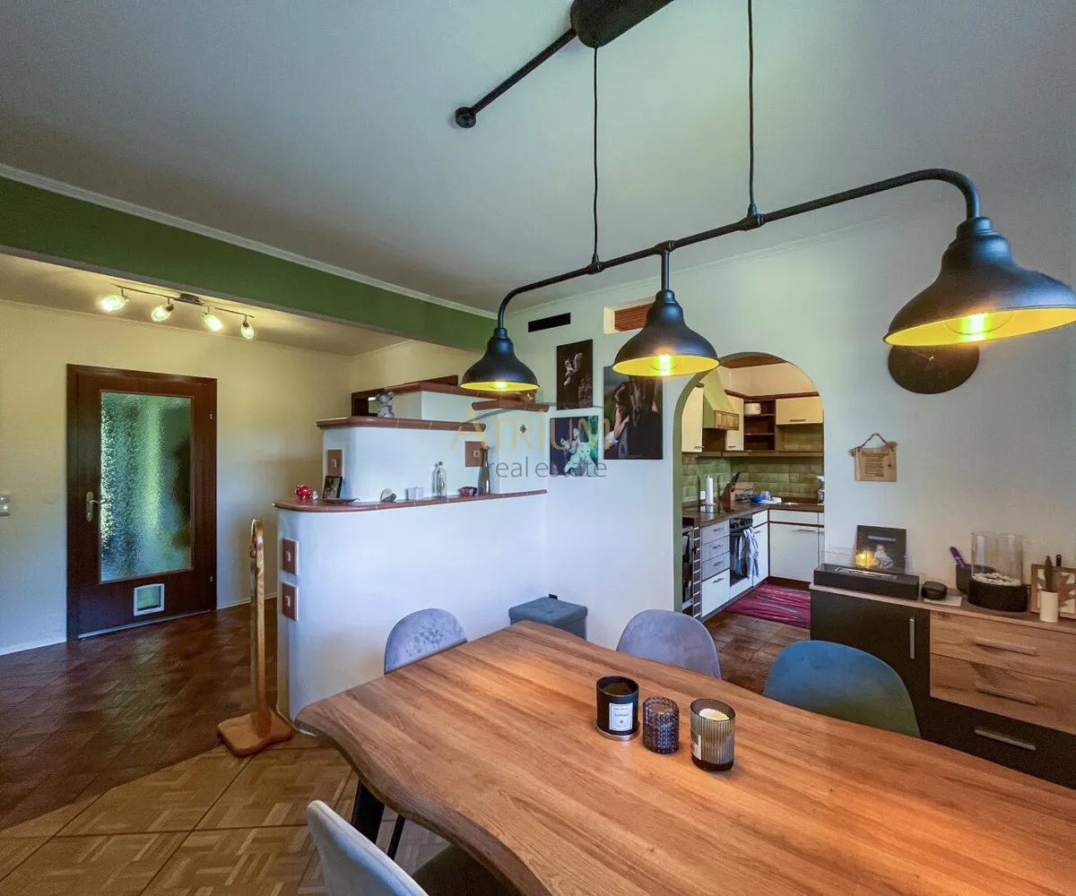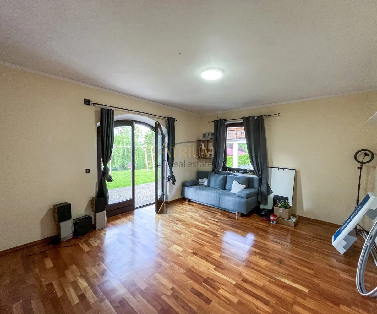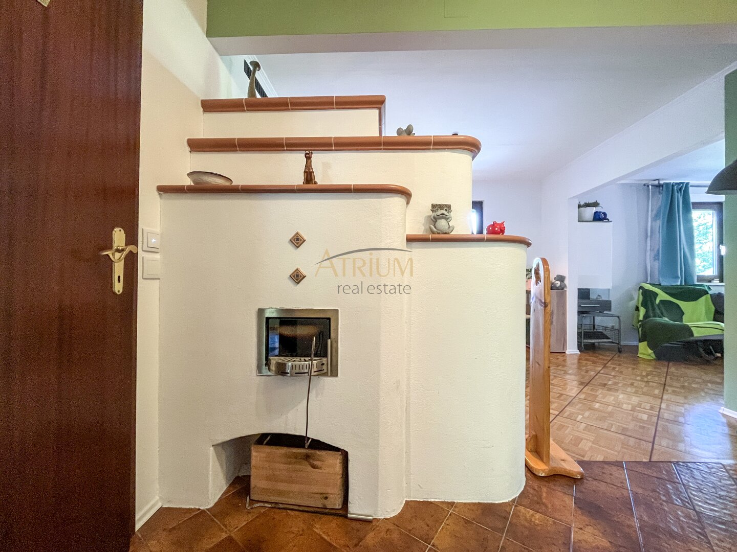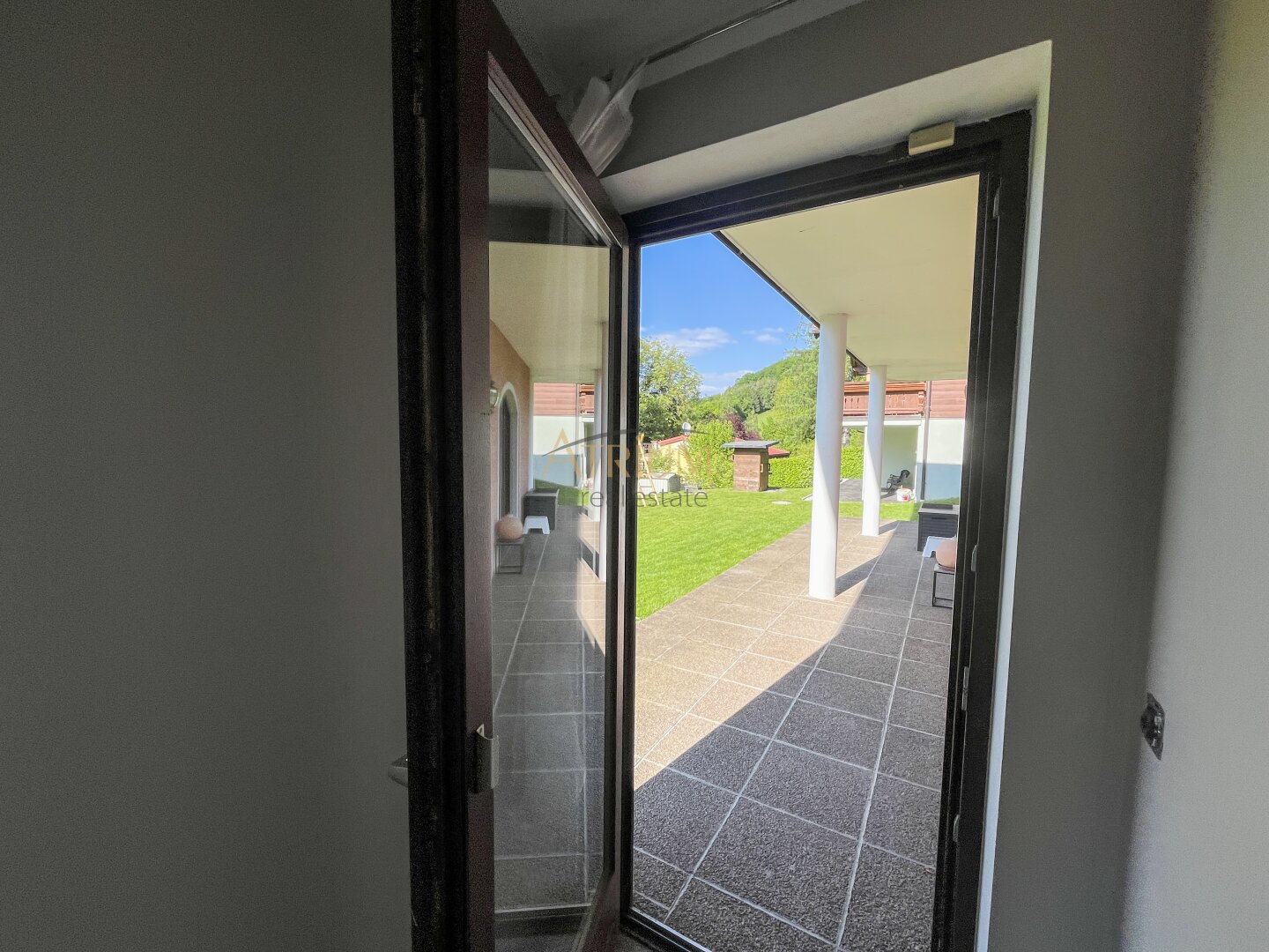 Über die Innentreppe gelangt man in das lichtdurchflutete Gartengeschoß mit direktem Zugang zum gepflegten Gartenbereich .