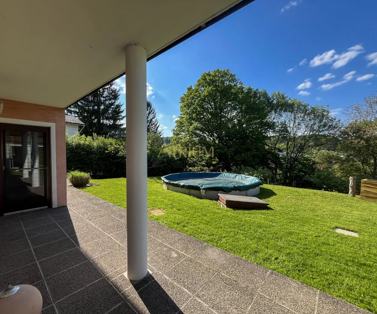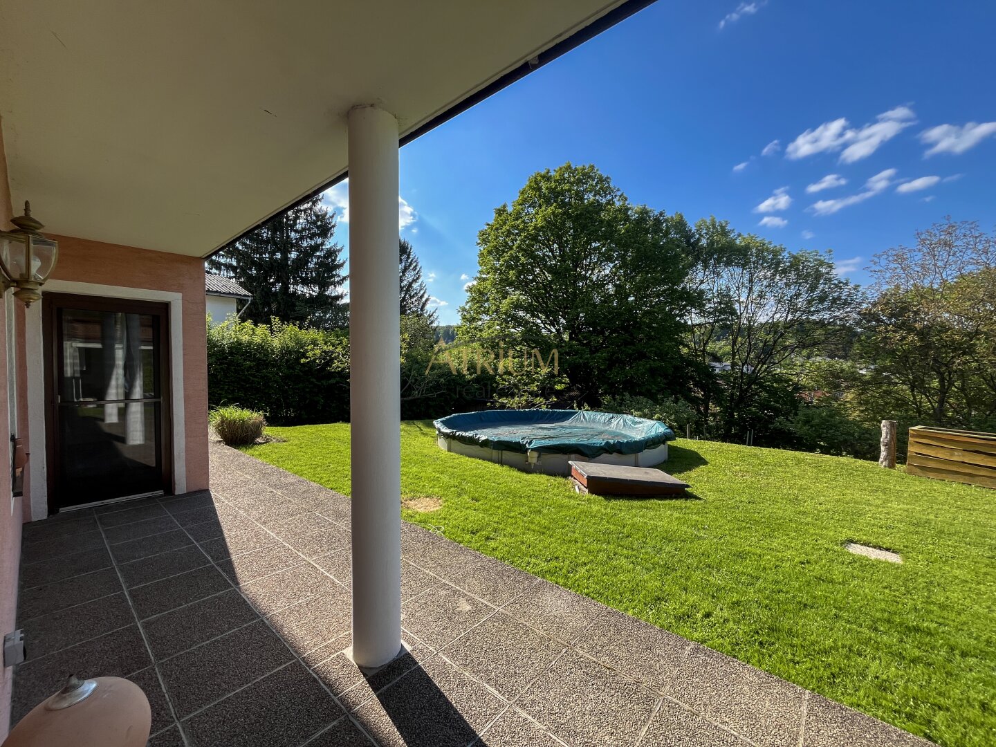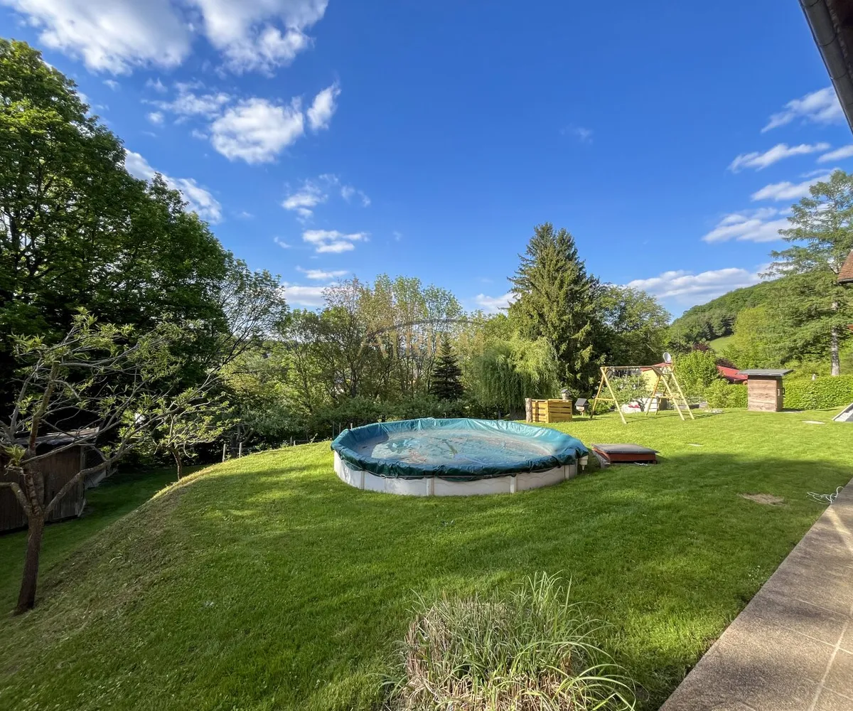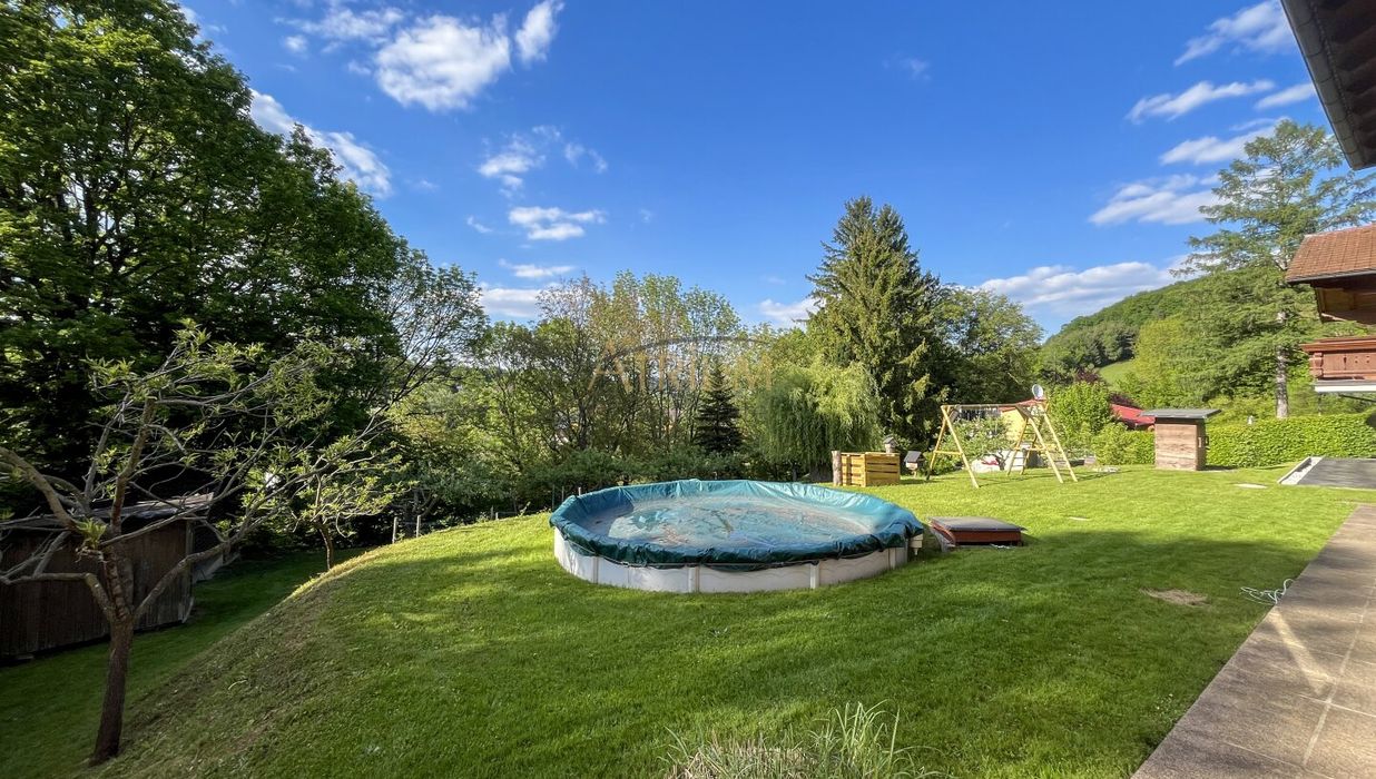 Das Grundstück liegt am Waldrand in Hanglage mit freiem Blick ins Hügelland.