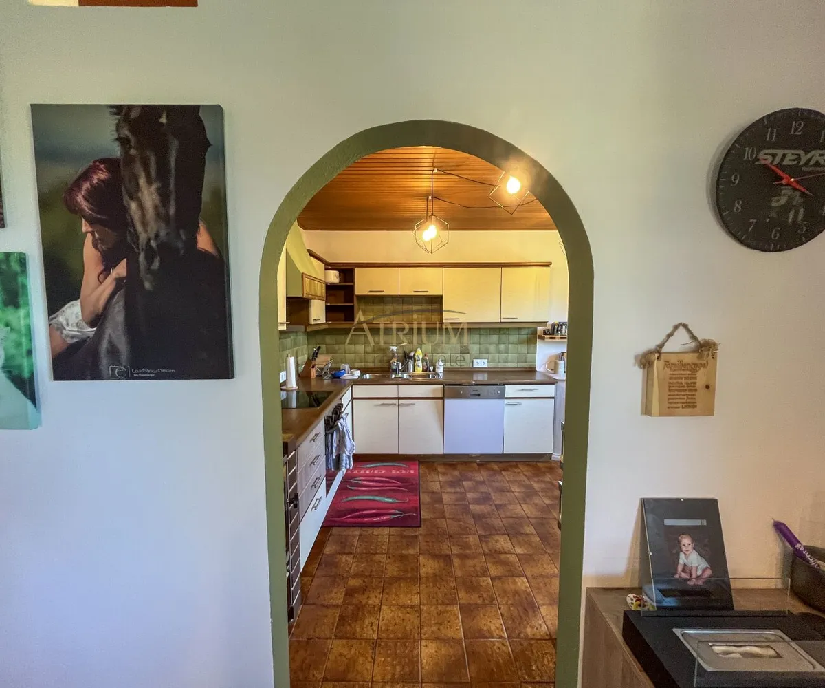 Das Wohnhaus verfügt über eine Gesamtwohnfläche von ca. 160 m² sowie umfangreiche Nutzflächen und eine Garage im angrenzenden Nebengebäude.