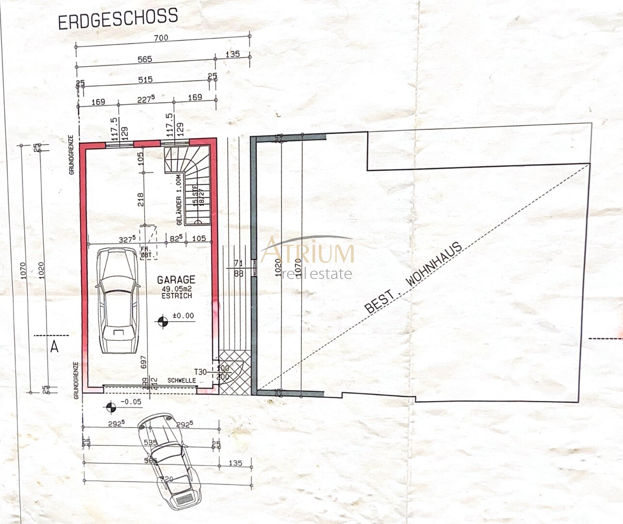 Garage: ca. 49 m² , Platz für 3 PKW, darunter großzügige Nutzfläche mit ca. 49 m²