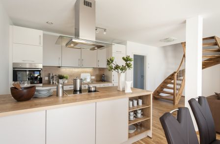 Sämtliche Abbildungen - teils aus GED Musterhäusern - stellen lediglich unverbindliche Gestaltungsmöglichkeiten dar und besitzen keinerlei Verbindlichkeit für die tatsächliche Ausführung / finale Ausstattung. Dekorations- & Einrichtungsgegenstände sind nicht im Preis enthalten. Erstbezugs-Häuser werden unmöbliert übergeben.