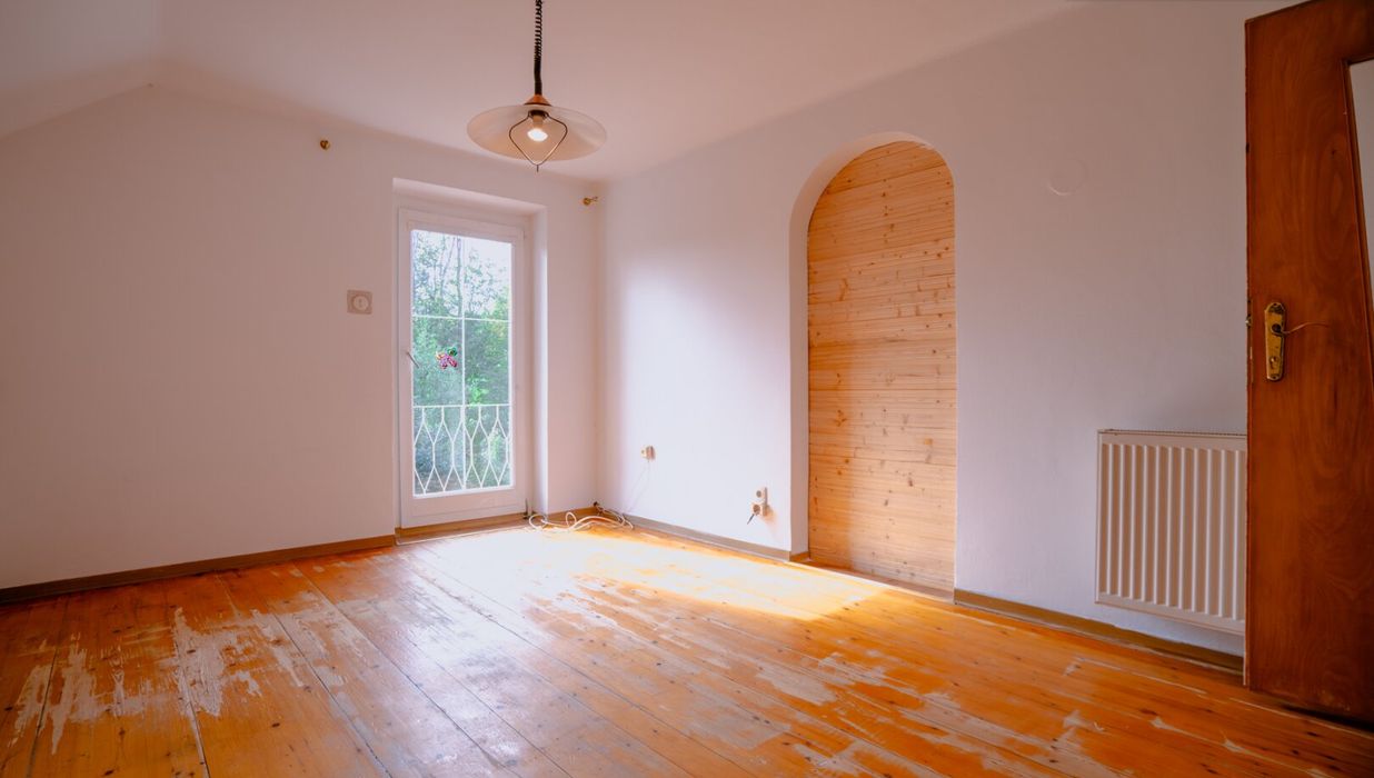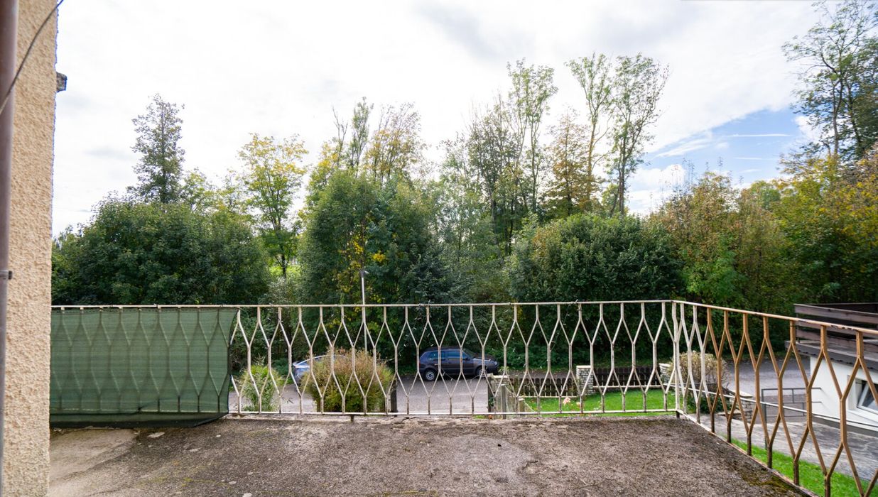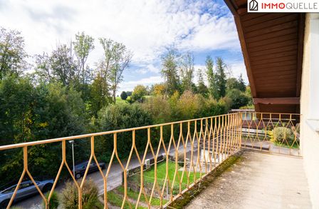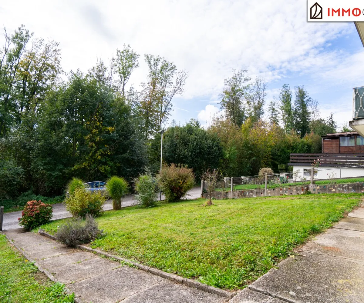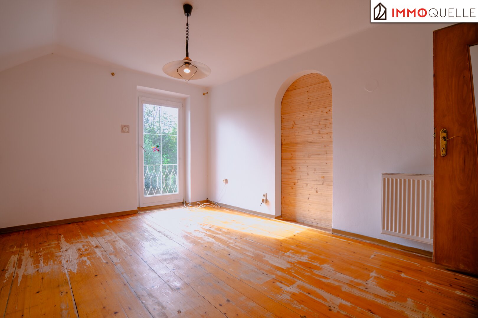 Schon beim Betreten des Erdgeschosses spürt man: Hier schlummert Potenzial. Über den zentralen Vorraum verzweigen sich Küche, Wohn- und Badezimmer sowie ein separates Gäste-WC – klassisch und zugleich funktional. Das Wohnzimmer öffnet sich zum Balkon, der bereits heute einen traumhaften Ausblick ins Grüne bietet.