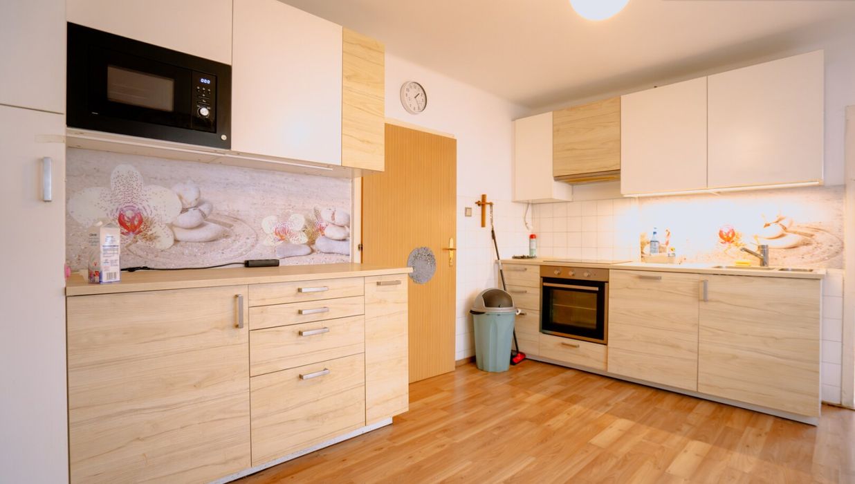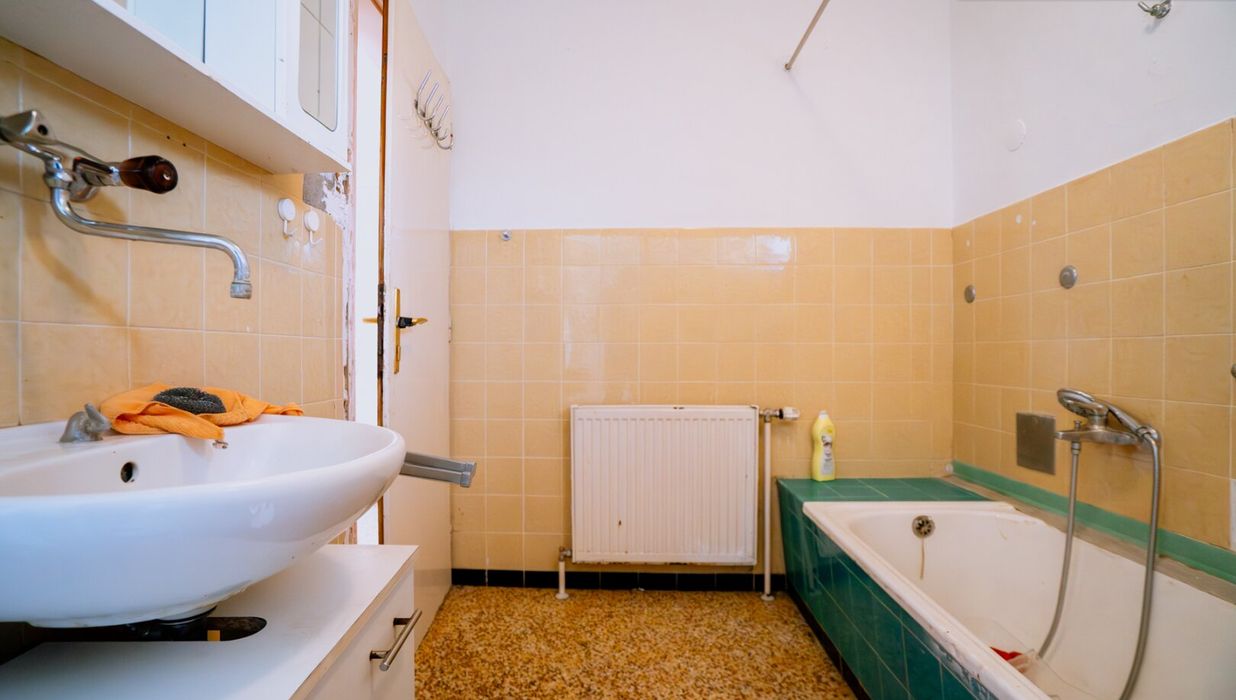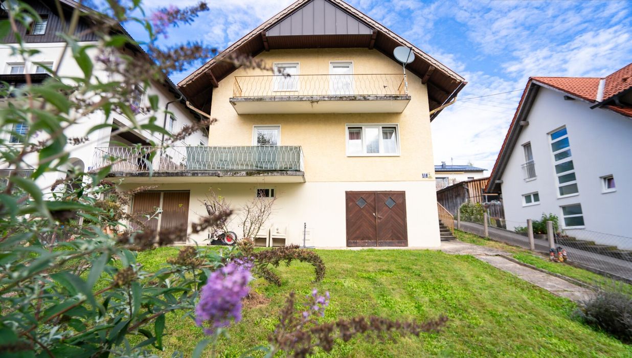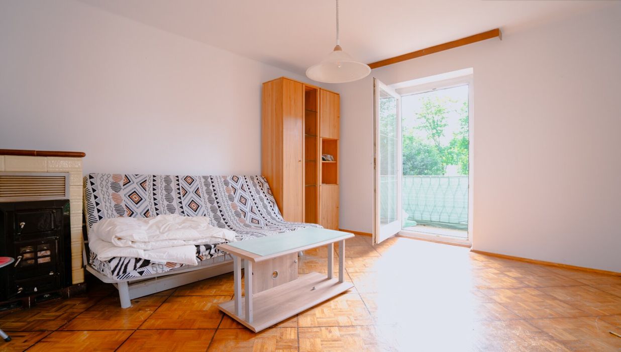 Schon beim Betreten des Erdgeschosses spürt man: Hier schlummert Potenzial. Über den zentralen Vorraum verzweigen sich Küche, Wohn- und Badezimmer sowie ein separates Gäste-WC – klassisch und zugleich funktional. Das Wohnzimmer öffnet sich zum Balkon, der bereits heute einen traumhaften Ausblick ins Grüne bietet.