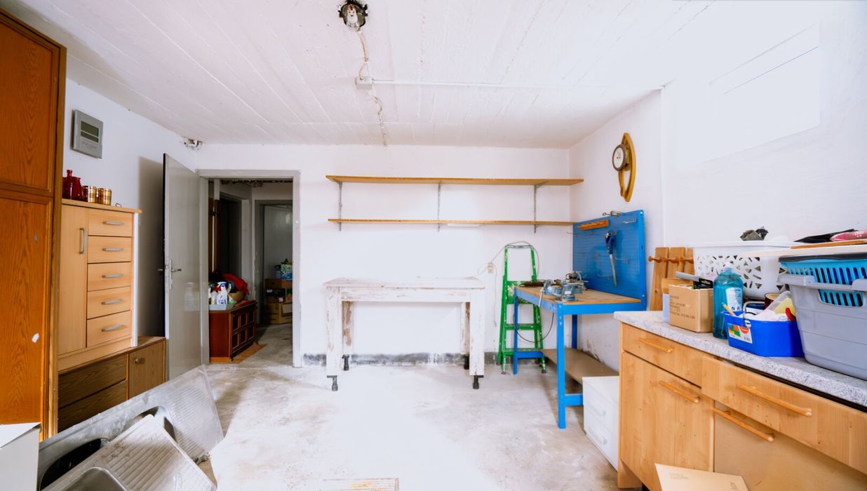 Der vollunterkellerte Bereich bietet mit 81 m² Nutzfläche nicht nur Stauraum, sondern echten Mehrwert: Hobbyräume, Fitnesszone oder Werkstatt – hier ist Platz für Ideen. Zwei Garagen, ein zusätzlicher Schuppen mit Ausbaupotenzial mit Terrasse für das Erdgeschoss und eine integrierte Werkstatt ergänzen das Ensemble.