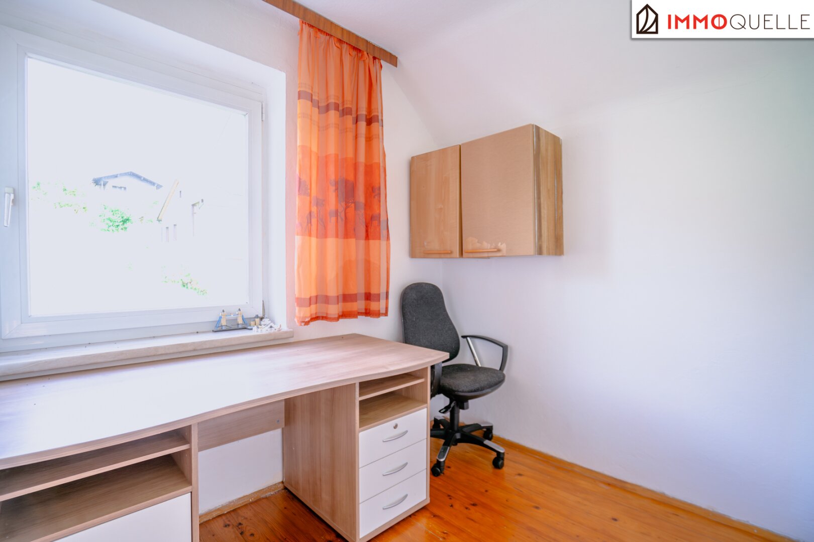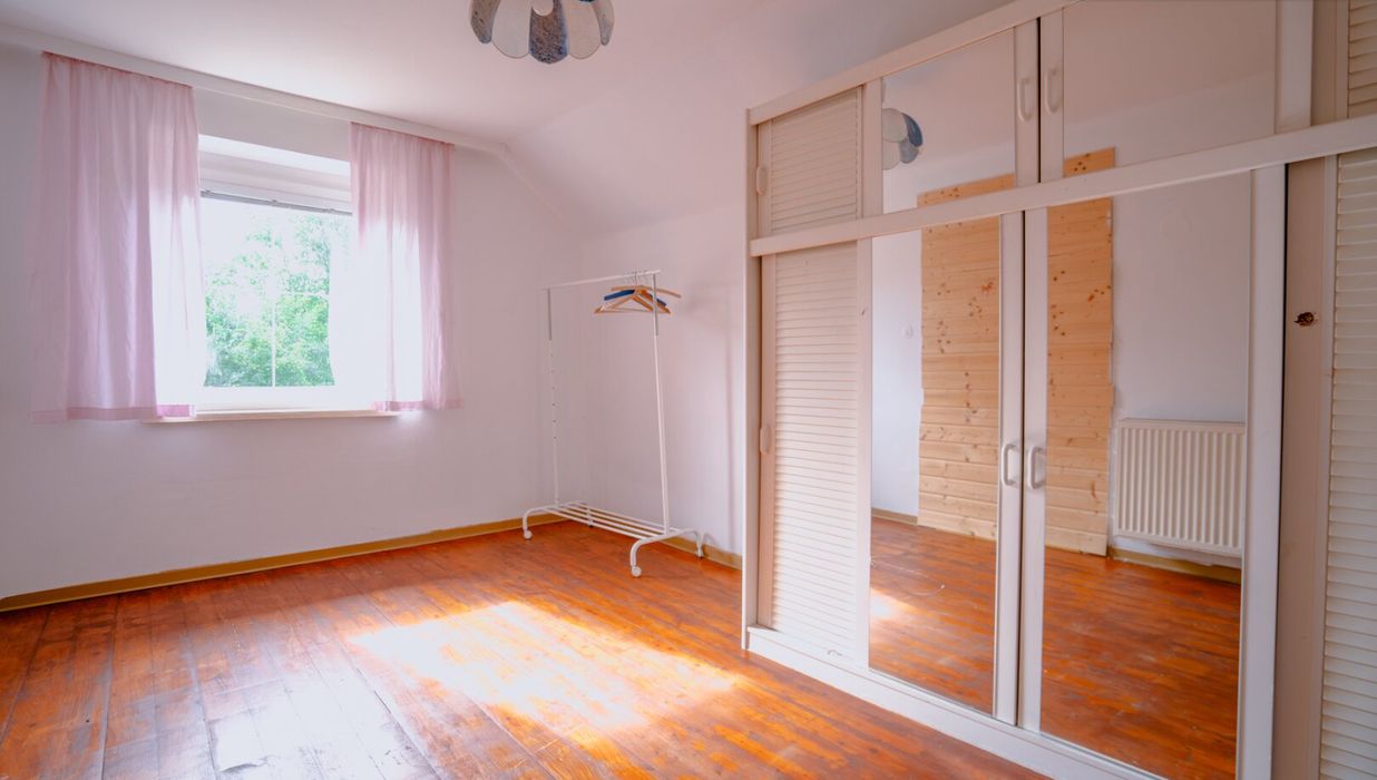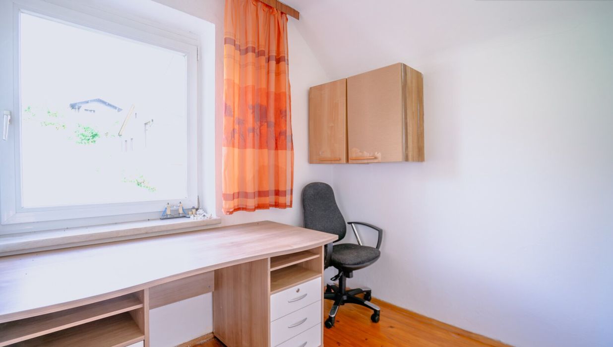 Im Obergeschoss erwarten Sie drei Schlafzimmer, die sich perfekt für Familien oder Homeoffice-Konzepte eignen. Die Dachschräge verleiht den Räumen gemütlichen Charme, während Fensterfronten den Blick in die umliegende Natur lenken.