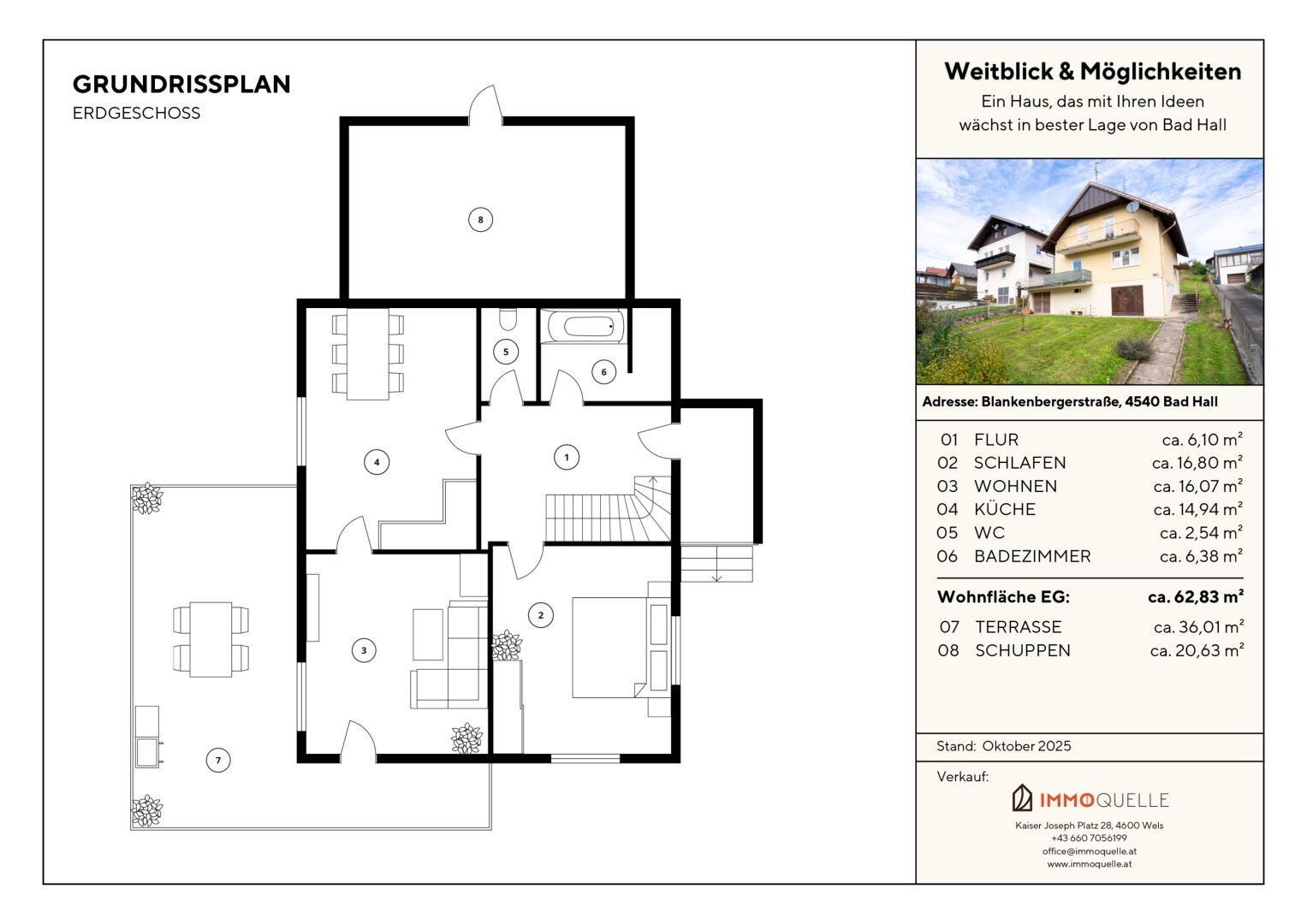 Die Blankenbergerstraße gehört zu den begehrtesten Wohnlagen von Bad Hall – ruhig, grün, etabliert. Einkaufsmöglichkeiten, Schulen, Kurpark, Ärztezentrum und Freizeitangebote liegen in bequemer Nähe. Direkt gegenüber eröffnet sich ein Panorama, das seinesgleichen sucht: Golfplatz, weite Felder und in der Ferne die Alpen.