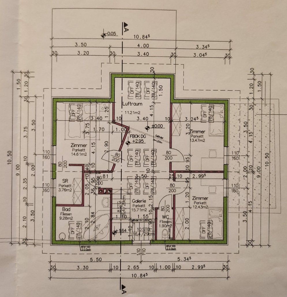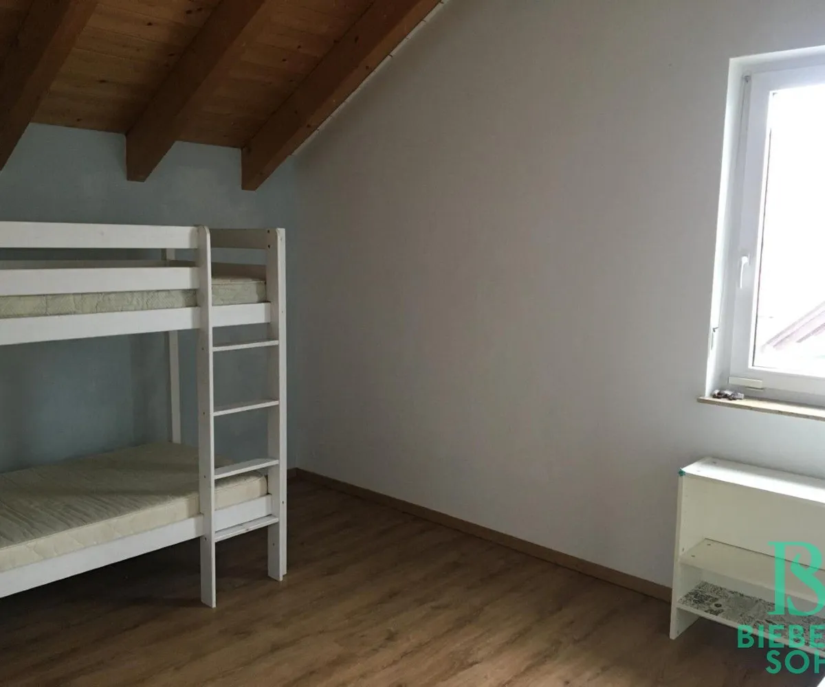 Ein robuster Stiegenaufgang im Vorraum führt in die ca. 16m² große Galerie im Dachgeschoss. Von hier aus sind 3 Zimmer, in den Größen von 12m² bis 15m², ein großes Badezimmer mit Wanne, ein separates WC und der Balkon ins Wohnzimmer zu erblicken.