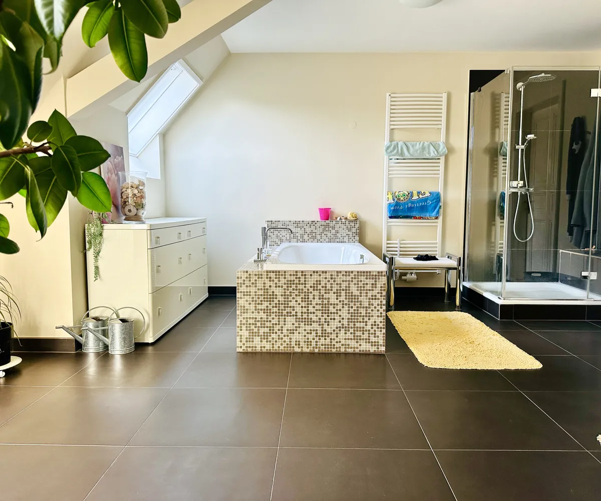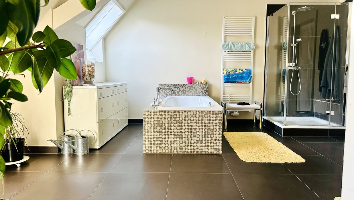 Mit zwei WCs und zwei Badezimmern (Badewanne, Dusche) ist der Komfort für Ihre Familie garantiert. Die Garage und ein zusätzlicher Stellplatz bieten ausreichend Platz für Ihr Fahrzeug und sorgen für eine stressfreie tägliche Nutzung.