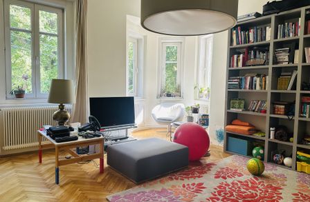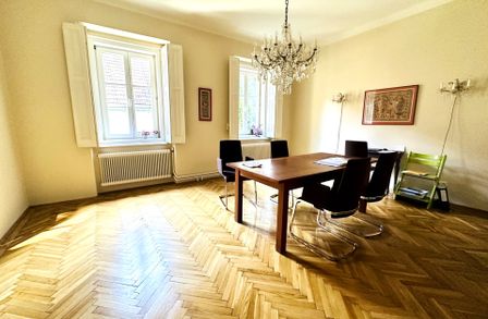 Mit sechs großen, lichtdurchfluteten Zimmern plus zwei Räumen im Souterrain, die Ihnen ausreichend Platz für individuelle Gestaltungsmöglichkeiten bieten (bisher dienten sie als Büroräume und Gym), erleben Sie hier modernes Wohnen in historischer Umgebung. In dieser elitären Villenlage wechselt nur selten eine Immobilie ihren Besitzer.