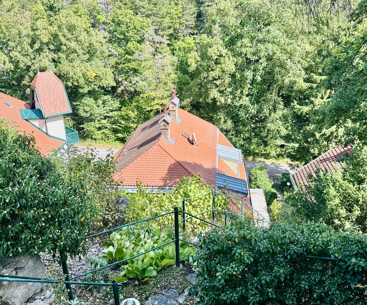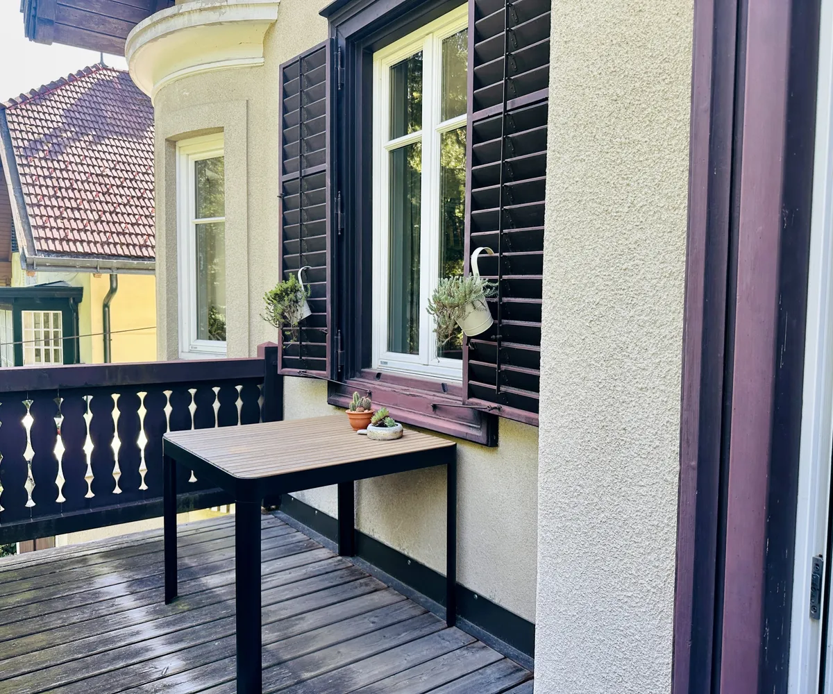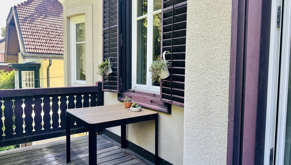 Die beiden Balkone nach Osten und die einladende Terrasse (über einige Stiegen zu erreichen) sind ideale Orte, um die Sonne zu genießen oder einfach nur den Blick auf die Umgebung schweifen zu lassen. Ob beim gemeinsamen Frühstück im Freien oder beim gemütlichen Abendessen mit Freunden – hier wird jede Stunde zum Erlebnis. Da der Garten erhöht liegt, ist der Sitzplatz von einer großartigen Ruhe gekrönt und Sie genießen die herrliche Aussicht zum gegenüber liegenden Felsenweg, der sich am Rande des Badener Kurparks befindet.