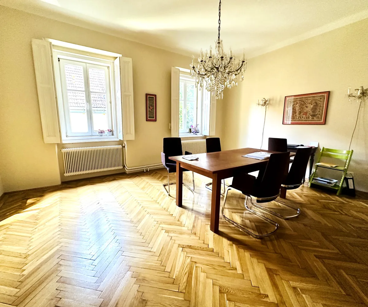 Die Immobilie überzeugt nicht nur durch ihre Ausstattung und Größe, sondern auch durch ihre durchdachten Details: Historische Elemente wurden hochwertig restauriert und vor einigen Jahren mit moderner Technik ergänzt.