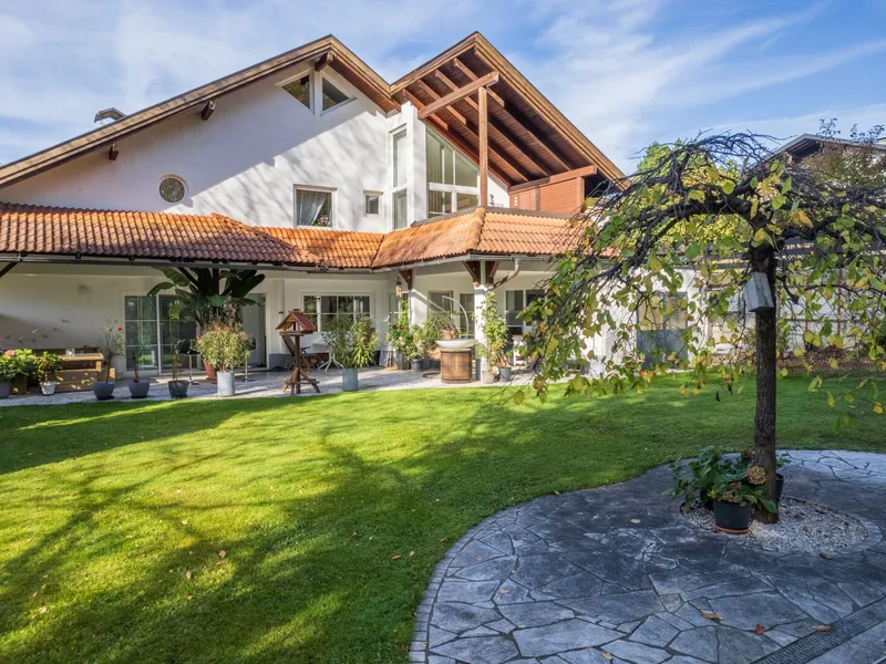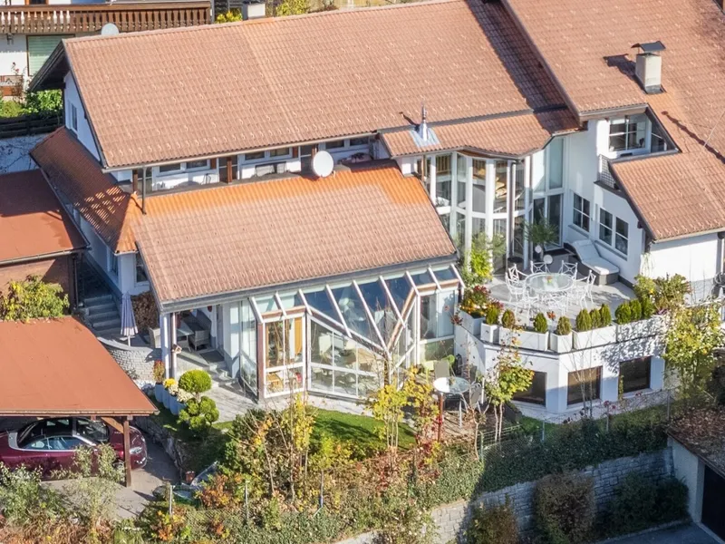 Das Haus überzeugt durch seine Außenanlagen und den traumhaften Blick auf die umliegenden Berge. Eine Doppelgarage und zwei Stellplätze bieten ausreichend Platz für Ihre Fahrzeuge. Der liebevoll angelegte Garten lädt zum Entspannen und Sonnenbaden ein. Hier können Sie die warmen Sommerabende in vollen Zügen genießen.
