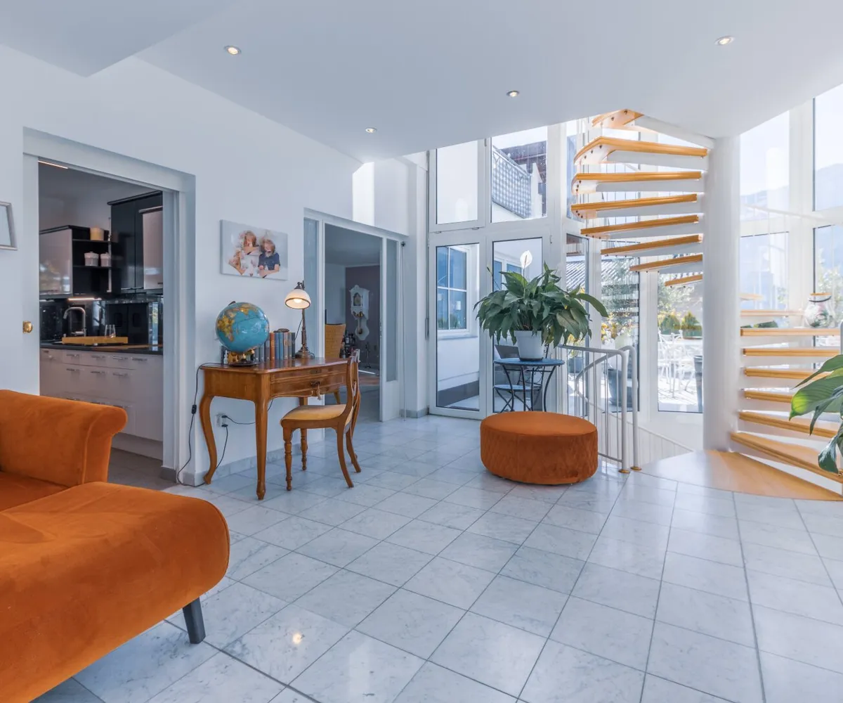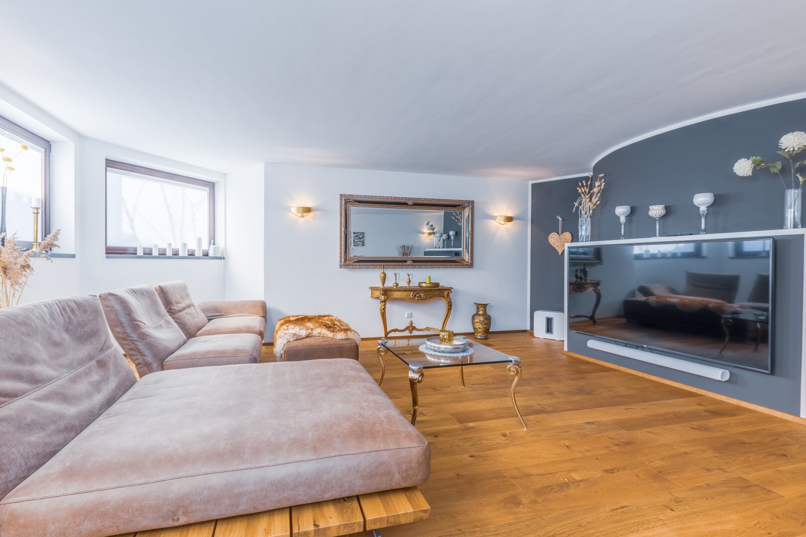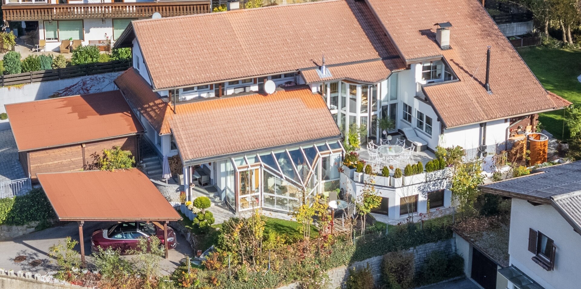 Dieses ruhig gelegene Appartement bietet auf drei Ebenen, eines im Jahre 1995 errichteten Hauses entsprechenden Flair. Dieser besticht durch lichtdurchflutete, freundliche Räume, guten Materialien, kombiniert mit einem moderaten Farbkonzept. Entsprechender Komfort und Luxus auf einer Wohnfläche von rd.204 m². Beim Haus angekommen, stellen Sie Ihr Fahrzeug entweder auf den Freiplatz, unter das Carport oder in die Garage, von wo man den Eingangsbereich auf kurzem Wege wetterfest erreicht. Gleich nach dem Eintreten spüren Sie die Freundlichkeit und Wärme dieses Gebäudes und haben sofort das Wohlgefühl, angekommen zu sein. Vom ansprechenden Vorraum gelangen Sie zentral in die Küche, den Wohn-Essbereich, in das Schlafzimmer, das Bad, ins WC oder zur sehr ansprechenden West-Südterrasse, überdacht mit einem Sonnensegel, mit Sonnenuntergängen inklusive. Der Blick über die Stadt Spittal und die umliegende Bergwelt sowie Sonne von morgens bis abends wird Sie begeistern. Östlich der Wohnung befinden sich eine weitere Terrasse mit anschließendem Garten und einem großen Pool, der beheizt und mit einer Abdeckung versehen ist. Über eine Wendeltreppe kommen Sie hoch zur Galerie mit noch besserem Ausblick oder aber in das Untergeschoss. Hier sind Schlafräume sowie ein eigener Wellnessbereich (Sauna, Relaxraum, Dusche, WC) und zusätzlich noch ein ehemaliger Schutzraum, der zur Bevorratung genutzt wird, untergebracht. Von dieser Ebene kommen Sie über eine Außentreppe wieder ins Freie, in den schönen Garten. Warme Holzparkettböden, praktische Fließen in den Nass- und einigen anderen Räumen, bieten den notwendigen Komfort, der zu einem solchen Appartement bzw. Reiheneckhaus gehört. Um der Zeit Rechnung zu tragen, wurde die Investition einer Photovoltaik-Anlage umgesetzt. Geheizt wird mit einer Fußboden-Zentralheizung. Sie haben auch die Möglichkeit, mit einem Kaminofen wohlige Wärme in einzelne Räume zu bringen. Ein sehr praktisches und hochwertig eingerichtetes Appartement oder auch Reiheneckhaus, wie immer Sie es auch benennen wollen. Auf jeden Fall ein großartiges Refugium für Ihren Lebensmittelpunkt über den Dächern von Spittal an der Drau.