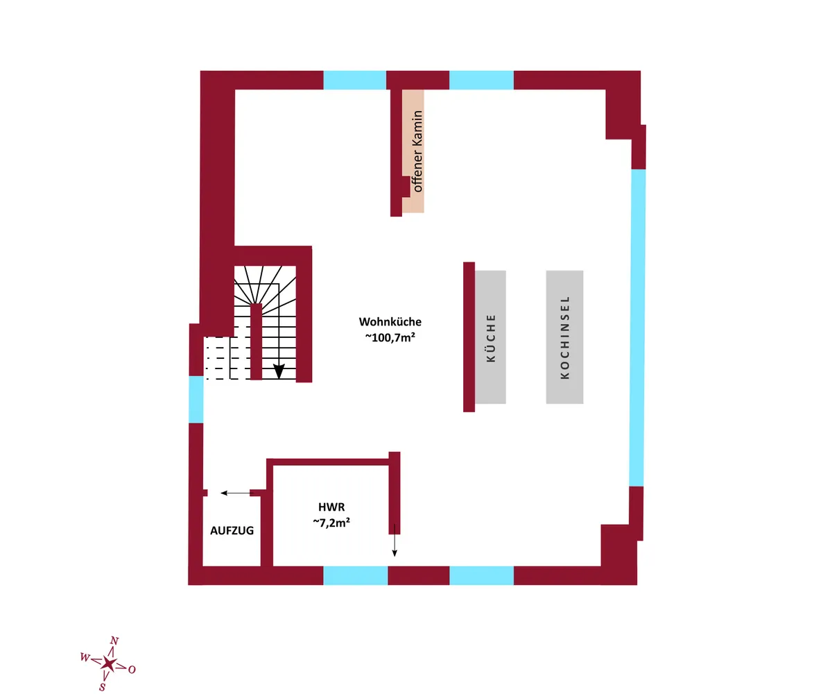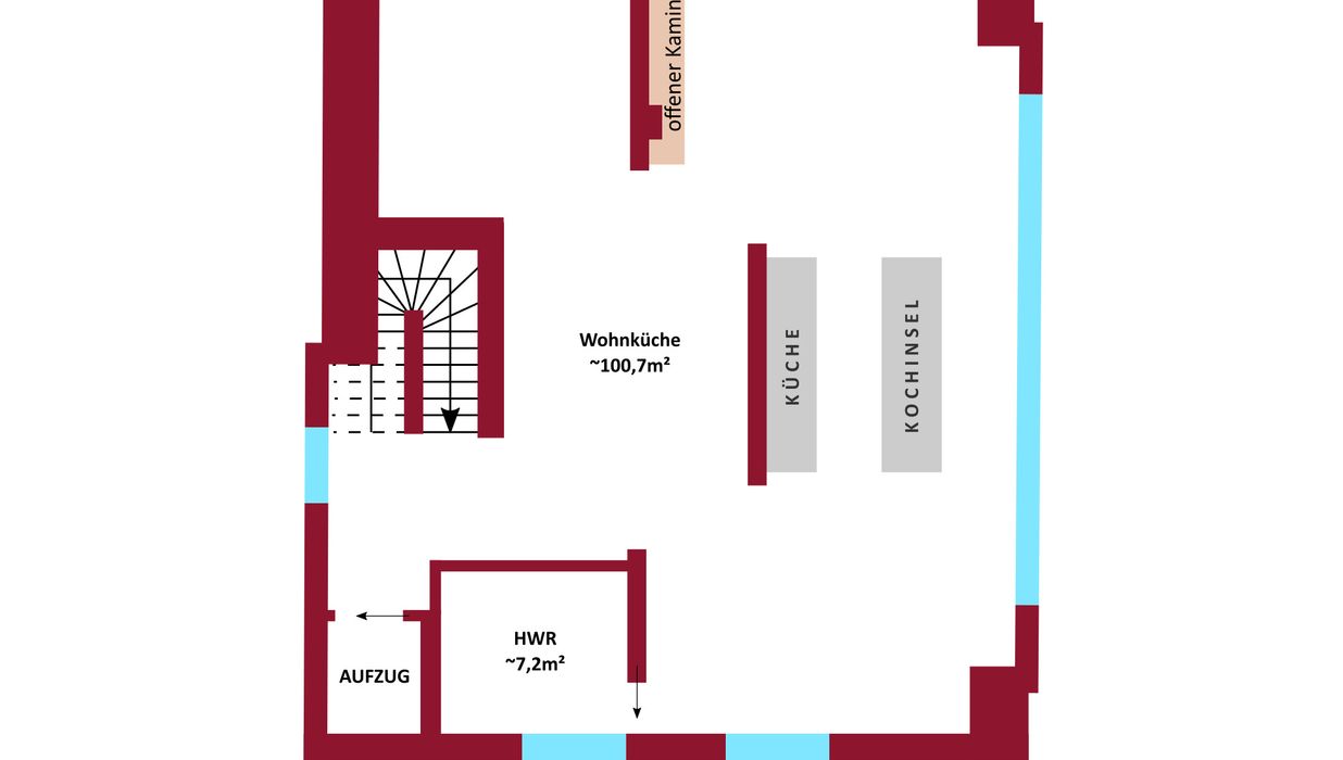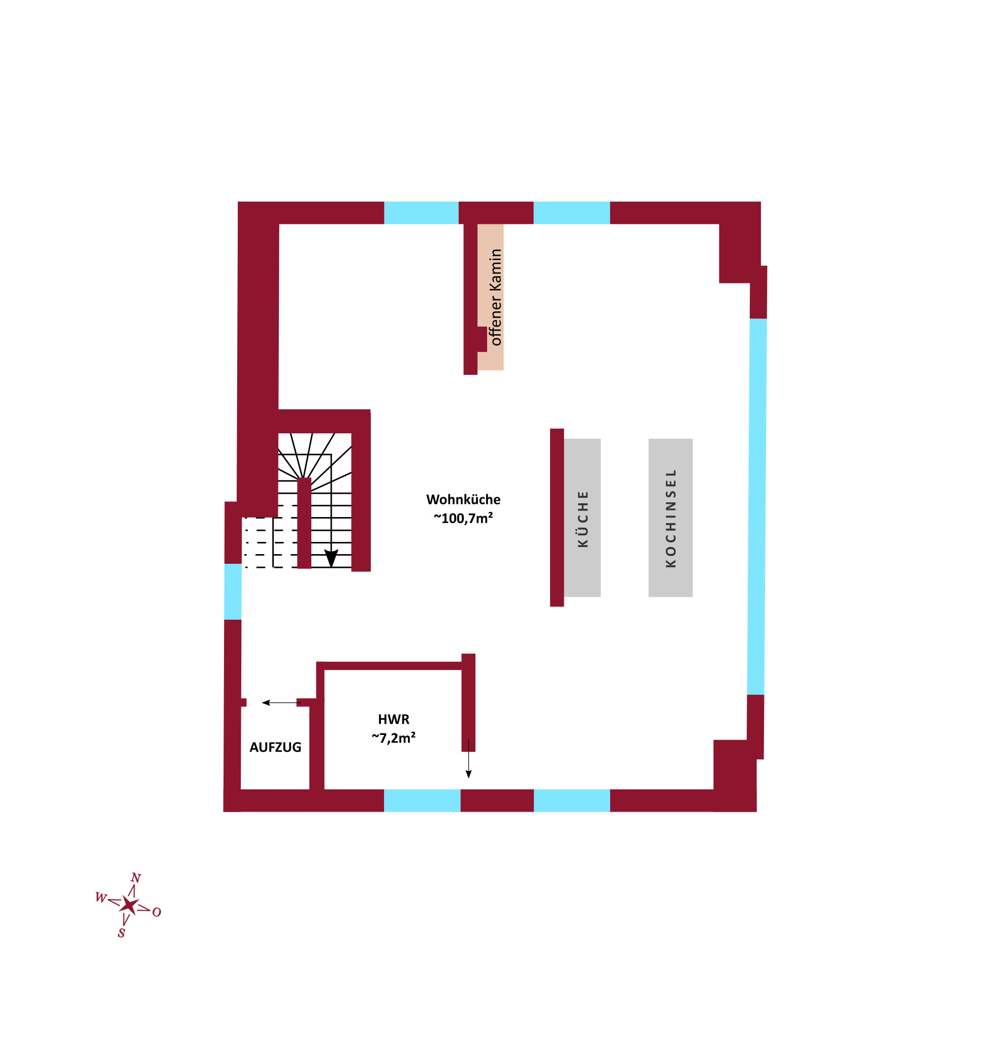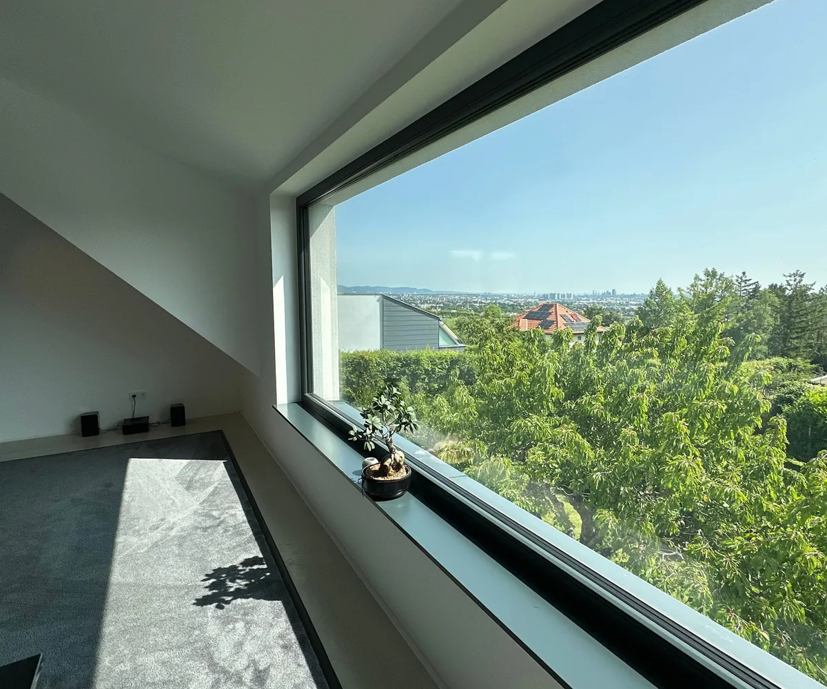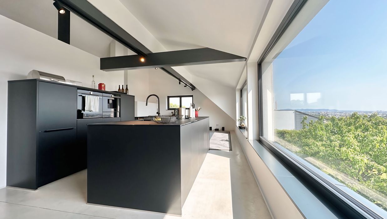 Die oberste Etage beeindruckt mit einem Raumgefühl, das in dieser Form nur selten zu finden ist. Eine moderne Designküche mit zentraler Kochinsel bildet das Herzstück dieser Ebene. Von hier aus schweift der Blick beim Kochen und Genießen bis nach Wien. Mit diesem Ambiente, Flair und Ausblick kann man alle Gäste beeindrucken. Offen gestaltet, lichtdurchflutet und mit beeindruckender Raumhöhe eignet sich dieser Bereich ideal als Wohnsalon, Atelier oder ganz persönliche Ruhezone . Ein offener Kamin schafft Behaglichkeit und Wohlgefühl nicht nur in der kalten Jahreszeit.