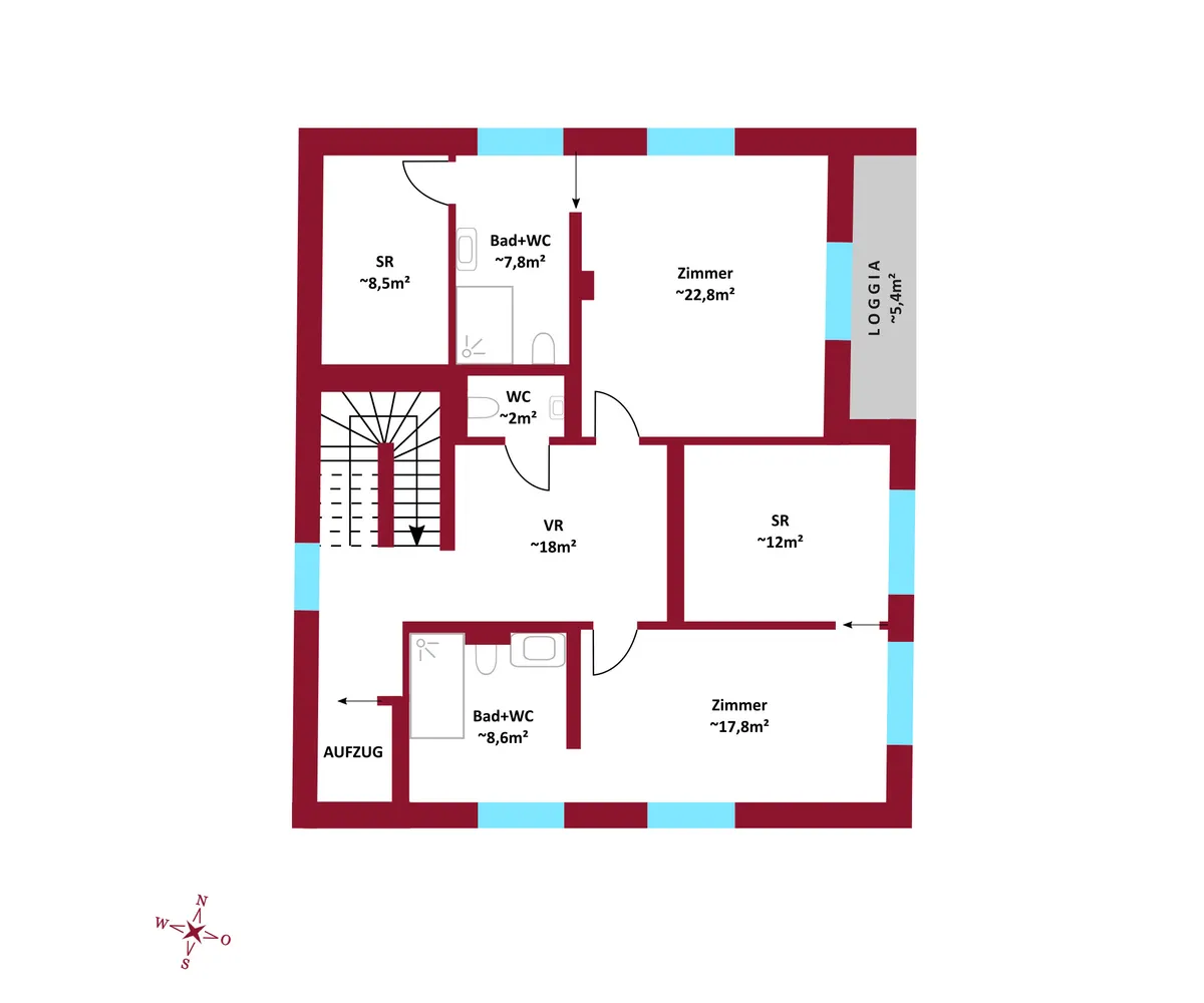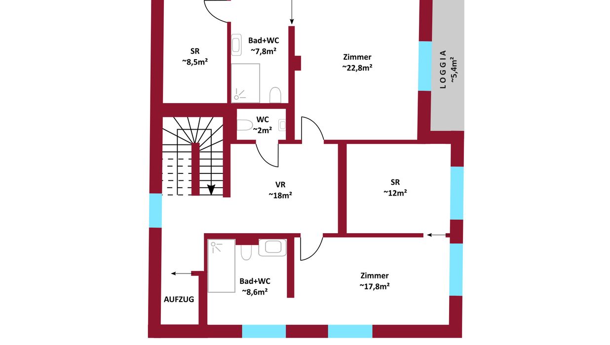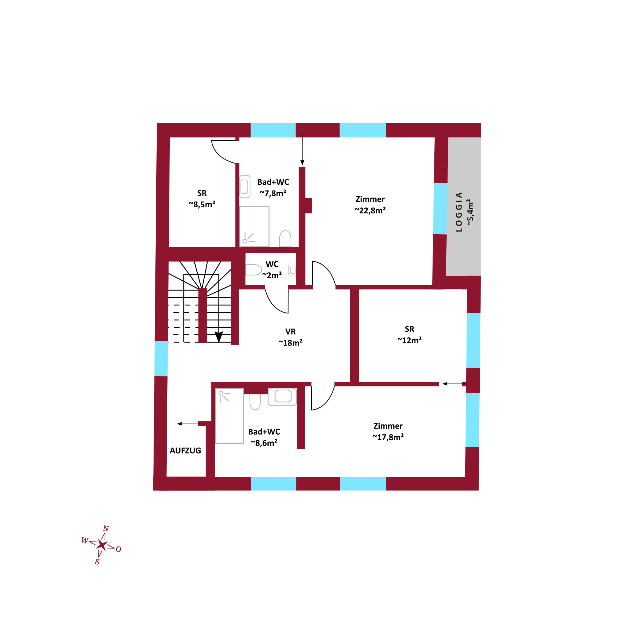 Alle Stockwerke sind bequem und barrierefrei über den hauseigenen Lift erreichbar.