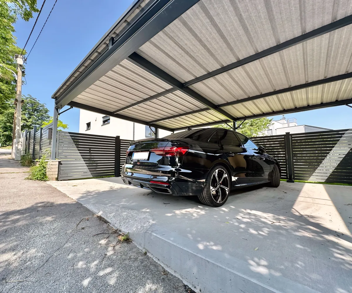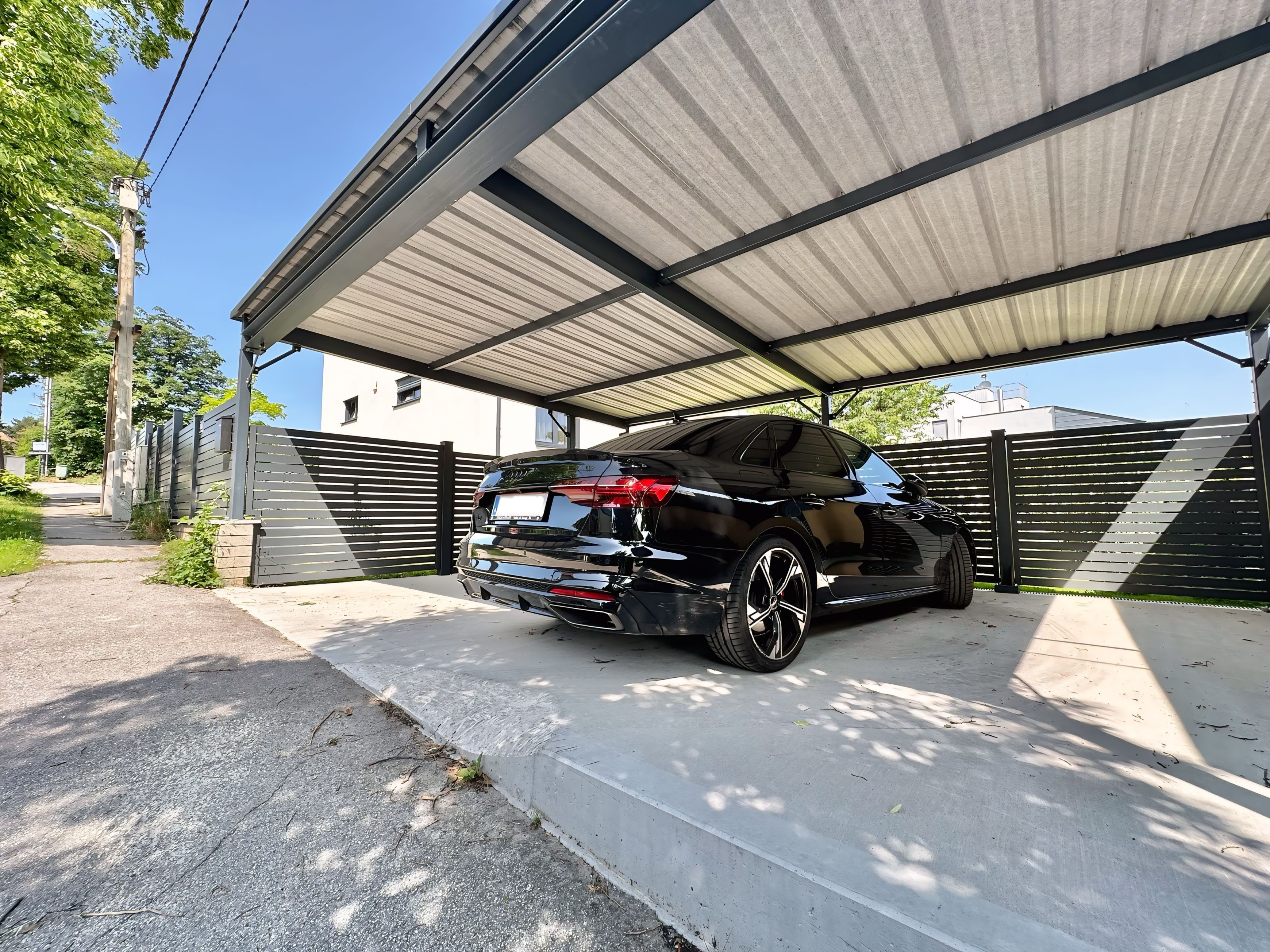 Zwei überdachte Stellplätze im Carport bieten bequemes Parken direkt am Grundstück.
