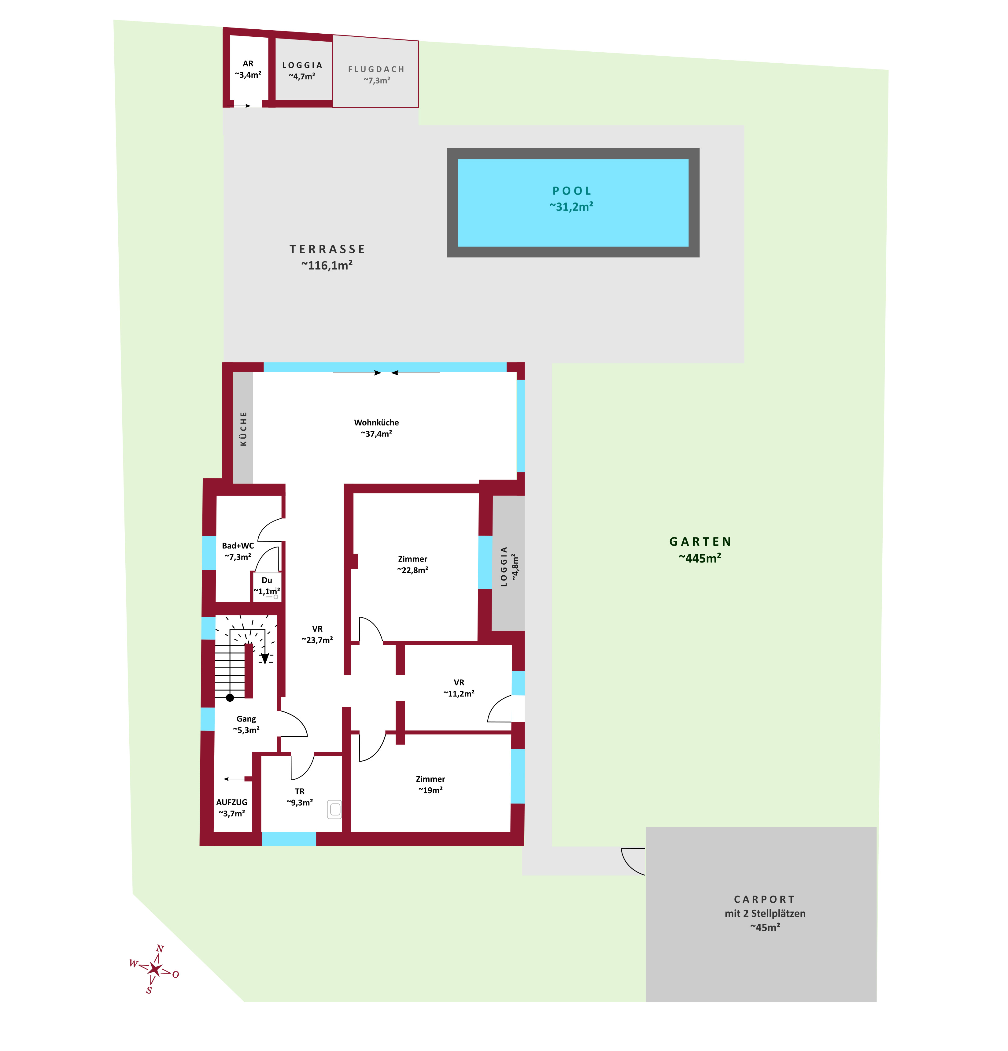 Die Lage überzeugt mit Ruhe, Fernblick auf Wien und hervorragender Erreichbarkeit. Eine Bushaltestelle befindet sich nur wenige Gehminuten entfernt und bietet Anschluss zum Bahnhof Brunn-Maria Enzersdorf mit direkter S-Bahn-Verbindung Richtung Praterstern und Hauptbahnhof. Einkaufsmöglichkeiten wie Lidl, Billa und BIPA, der Tennisplatz sowie der Startpunkt der Brunner Weinwanderung liegen nur wenige Fahrminuten entfernt. Schulen, Kindergarten, Montessorischule und das Sportgymnasium sind bequem mit dem Auto oder Bus erreichbar.
