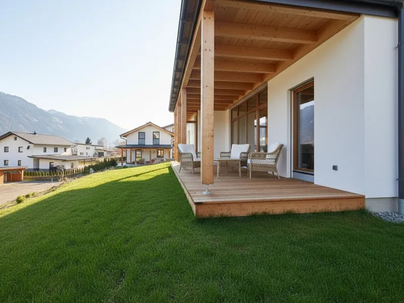 Die Umgebung präsentiert sich gepflegt und hochwertig, geprägt von mehreren neu errichteten Einfamilienhäusern. Diese gewachsene Neubau-Nachbarschaft unterstreicht die nachhaltige Werterhaltung des Standortes und macht das Objekt sowohl für Eigennutzer als auch für langfristig denkende Käufer attraktiv. Große Fensterflächen bieten sich an, um den unverbaubaren Blick auf die Täler und die umliegende Bergwelt bewusst in das Wohnkonzept einzubinden.