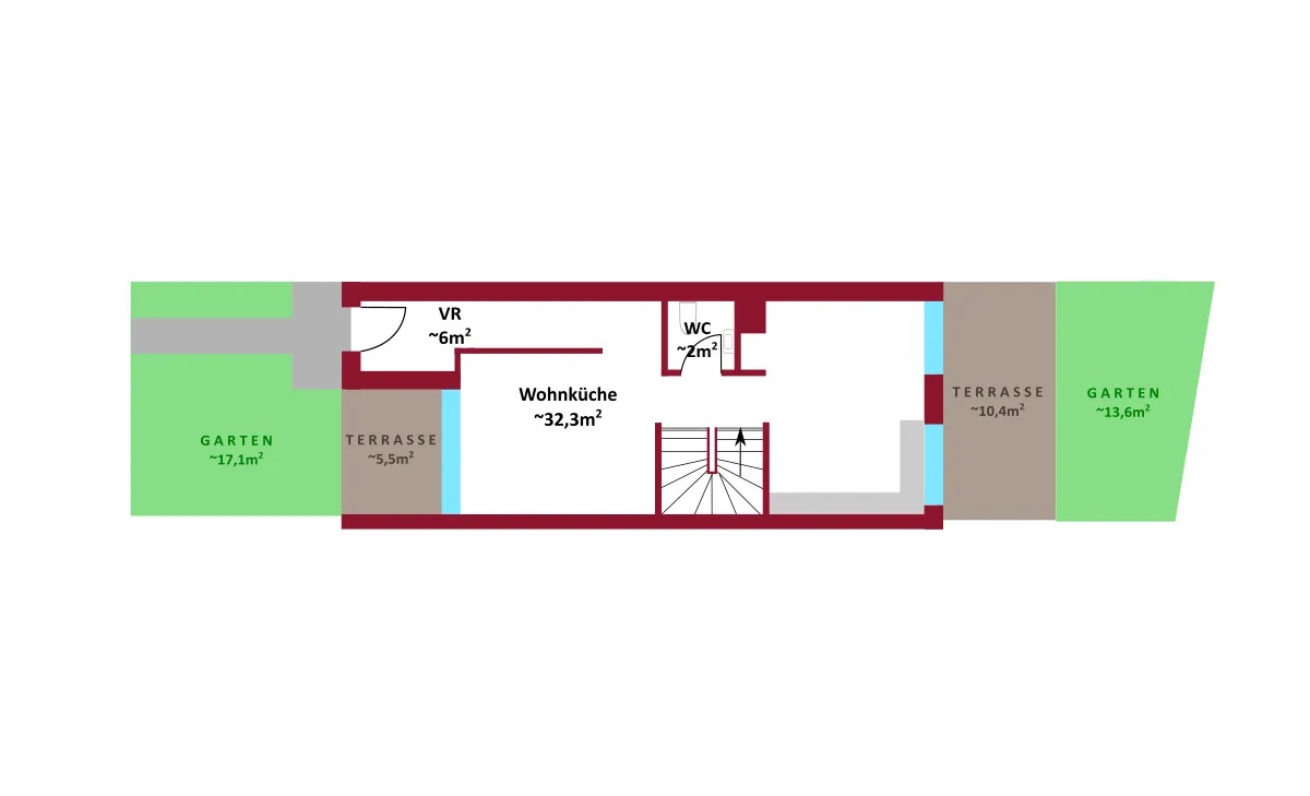 Auf einer Wohnfläche von ca. 166 m² und einer Gesamtnutzfläche von ca. 219m² erwartet Sie folgende Raumaufteilung: