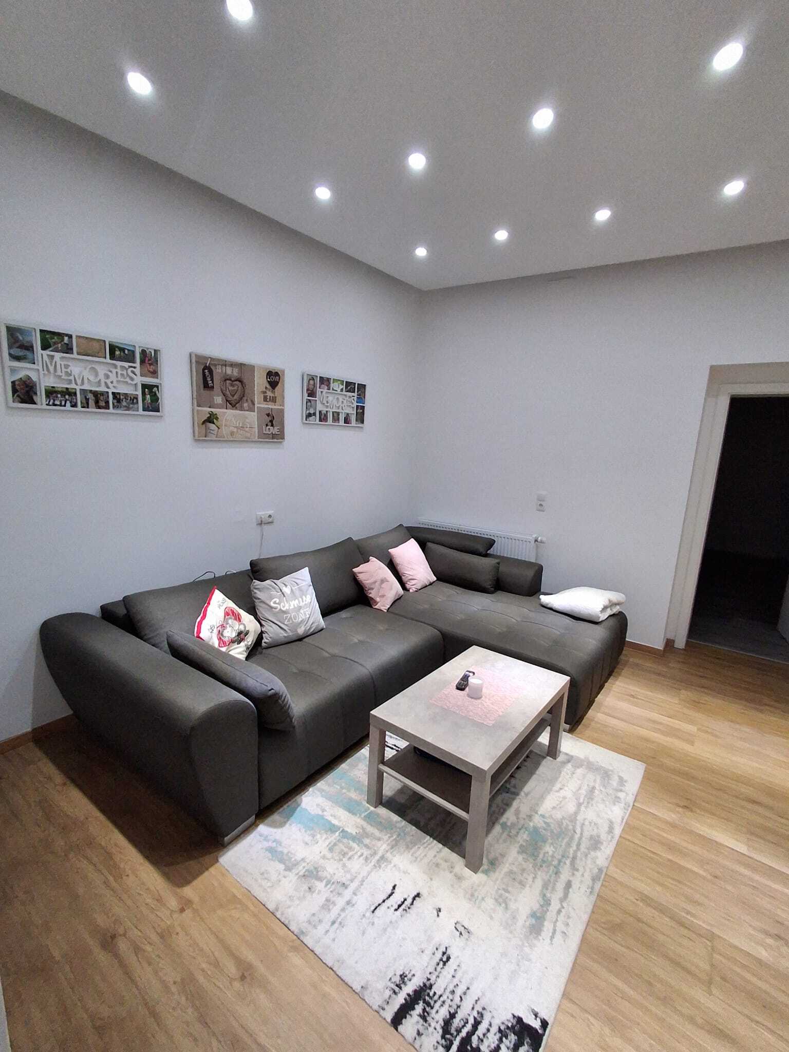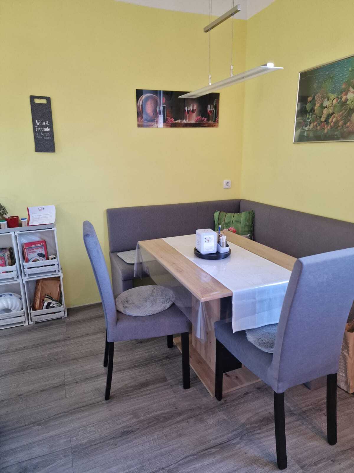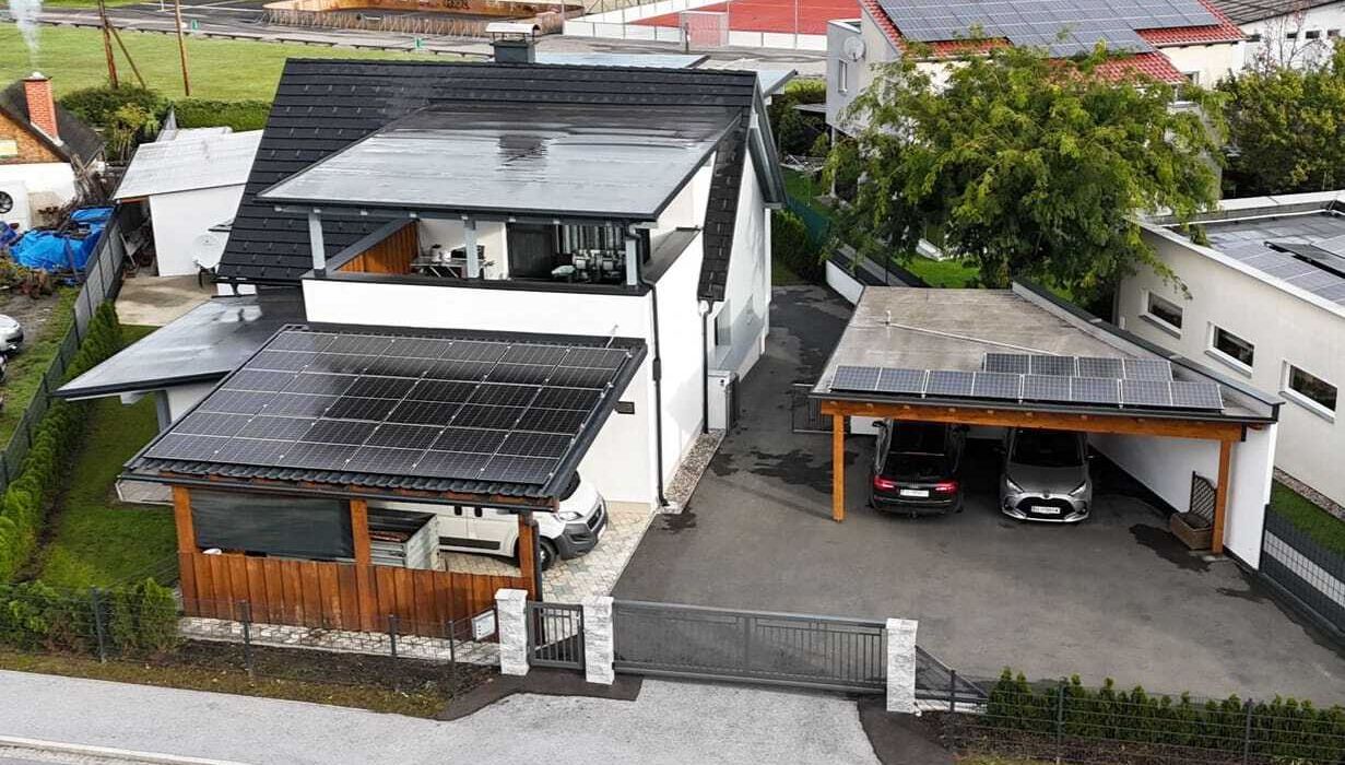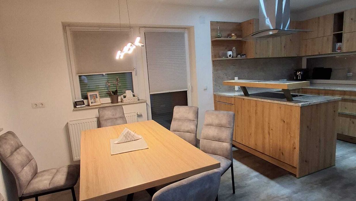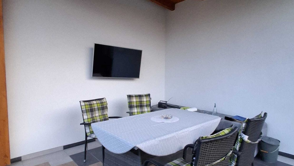 Beim Betreten des Obergeschosses befindet man sich direkt im Vorraum, diese mit einer Garderobe ausgestattet ist. Auf der linken Seite des Vorraumes erreicht man das Badezimmer, dieses mit einer Badewanne, einer Dusche, einen Waschbecken und einen Waschmaschinenanschluss ausgestattet ist. Nebenan befindet sich die separate Toilette. Den Gang entlang erreicht man auf der linken Seite die elegante Küche, die mit allen Geräten ausgestattet ist und über einen Esstisch und einer Sitzecke verfügt. Auf der rechten Seite befindet sich ein Abstellraum. Geradeaus vom Vorraum gelangt man in das großzügige Wohnzimmer, dieses mit einer Couchlandschaft ausgestattet ist. Direkt vom Wohnzimmer aus betritt man die einladende Terrasse, diese neu überdacht worden ist. Neben dem Wohnzimmer befindet sich das Schlafzimmer. Auch in dieser Etage sind alle Wohnräume mit viel Tageslicht durchflutet. Das Gebäude ist mit einer Luftwärmepumpe und mit Photovoltaik Paneelen ausgestattet.