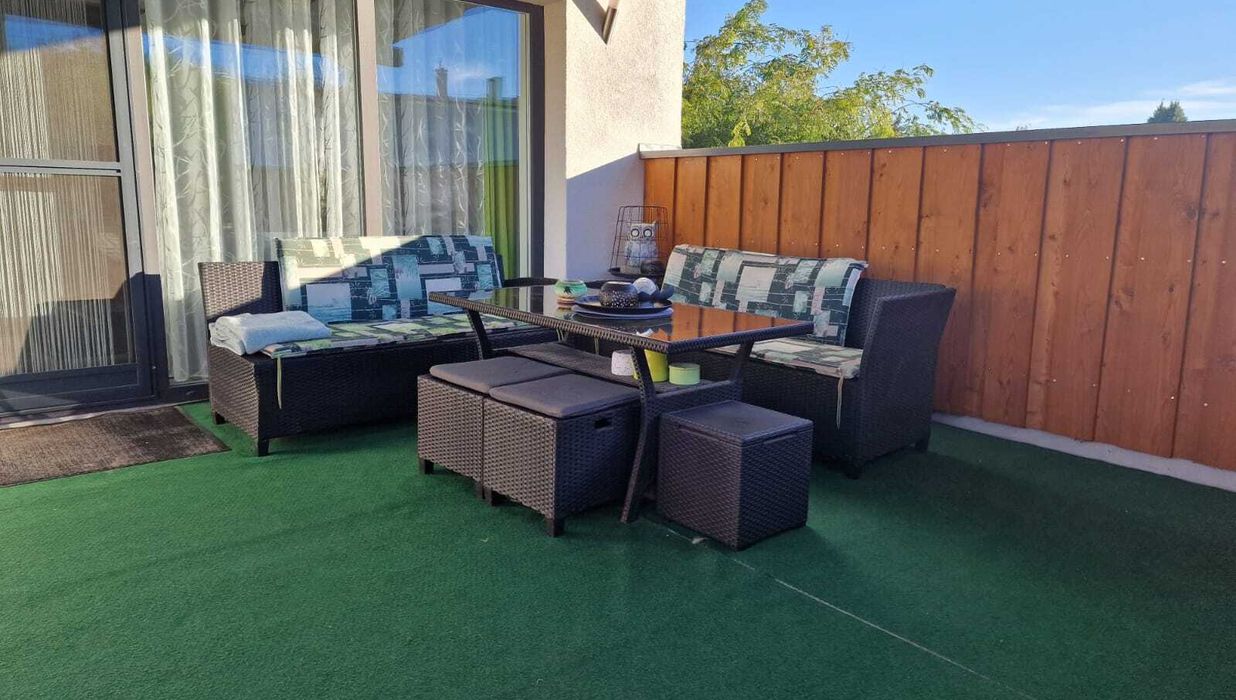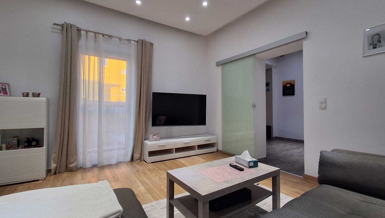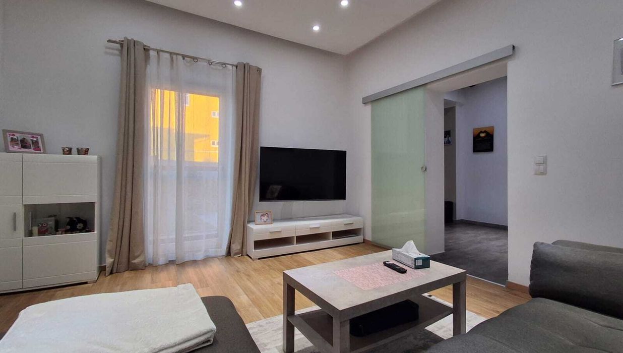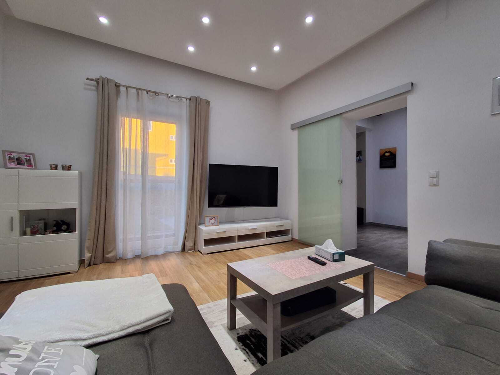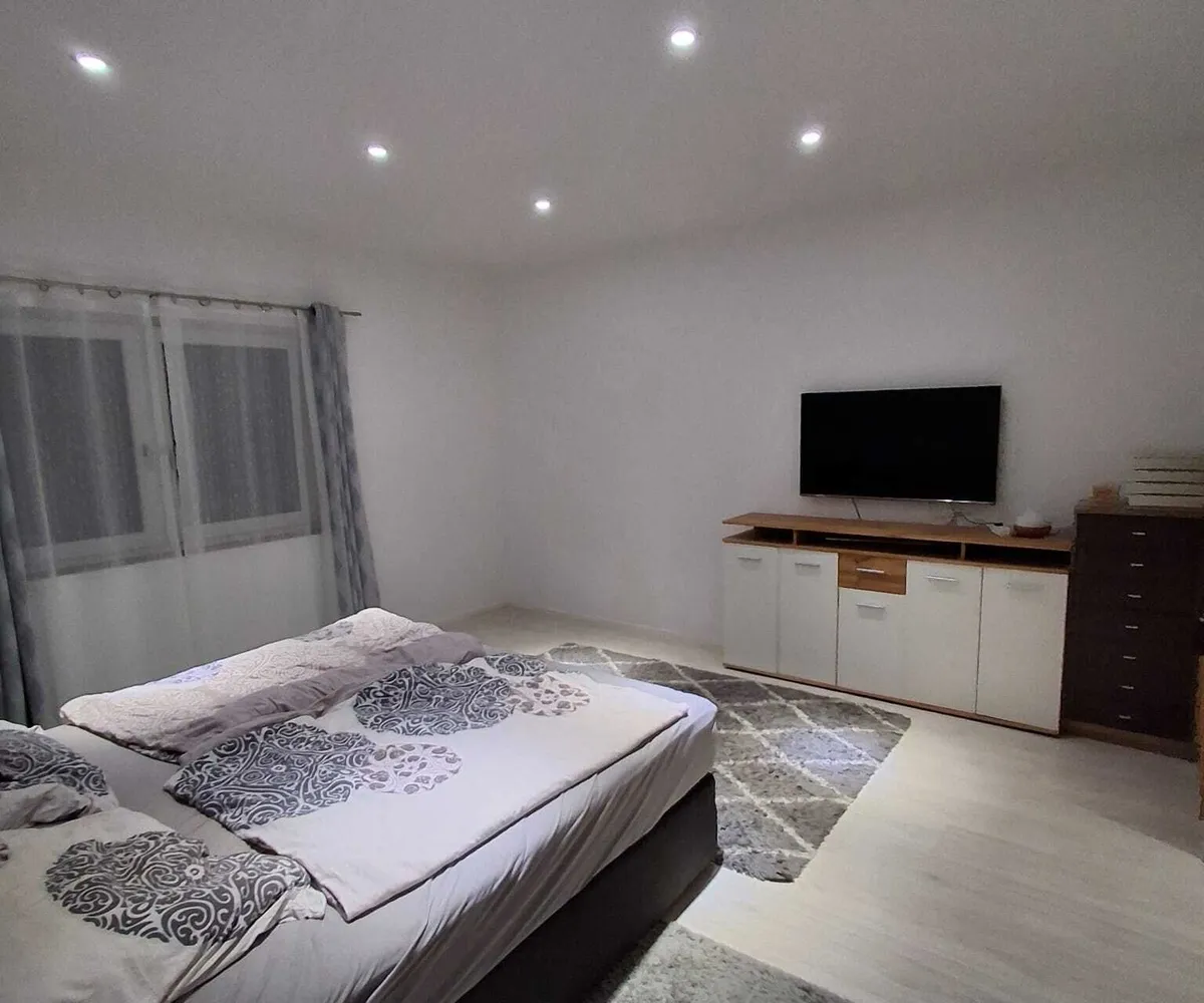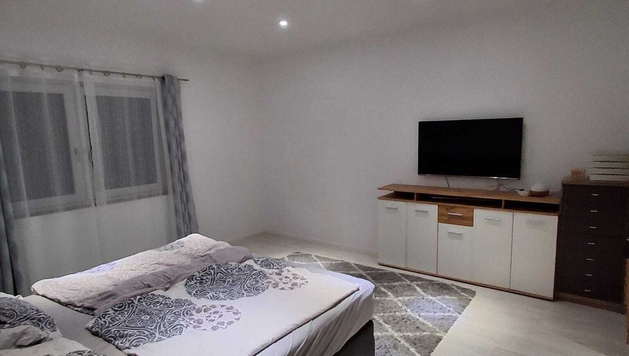 Beim Betreten des Obergeschosses befindet man sich direkt im Vorraum, diese mit einer Garderobe ausgestattet ist. Auf der linken Seite des Vorraumes erreicht man das Badezimmer, dieses mit einer Badewanne, einer Dusche, einen Waschbecken und einen Waschmaschinenanschluss ausgestattet ist. Nebenan befindet sich die separate Toilette. Den Gang entlang erreicht man auf der linken Seite die elegante Küche, die mit allen Geräten ausgestattet ist und über einen Esstisch und einer Sitzecke verfügt. Auf der rechten Seite befindet sich ein Abstellraum. Geradeaus vom Vorraum gelangt man in das großzügige Wohnzimmer, dieses mit einer Couchlandschaft ausgestattet ist. Direkt vom Wohnzimmer aus betritt man die einladende Terrasse, diese neu überdacht worden ist. Neben dem Wohnzimmer befindet sich das Schlafzimmer. Auch in dieser Etage sind alle Wohnräume mit viel Tageslicht durchflutet. Das Gebäude ist mit einer Luftwärmepumpe und mit Photovoltaik Paneelen ausgestattet.