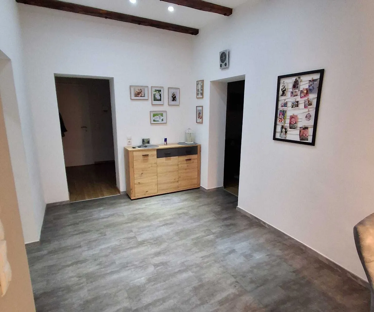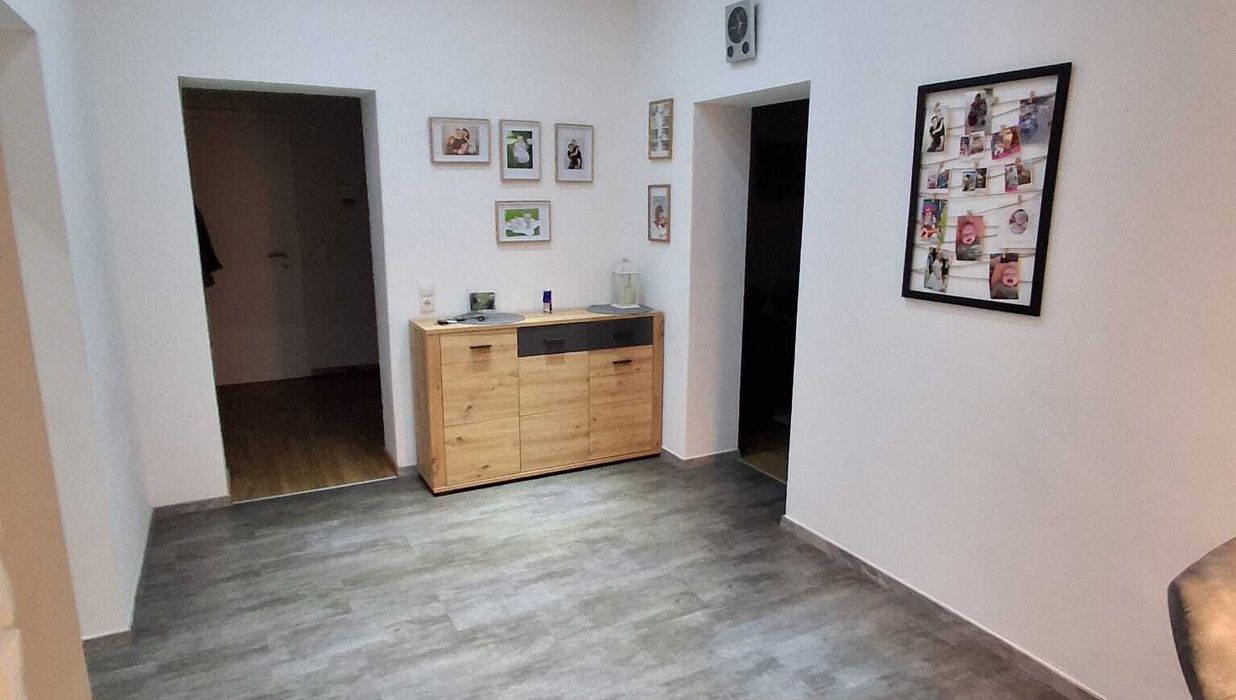 Vom Eingang gelangt man durch einen Vorraum, dieser mit einer Garderobe ausgestattet ist in die aufgeteilten Wohnräume.