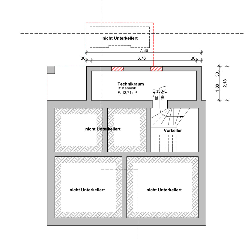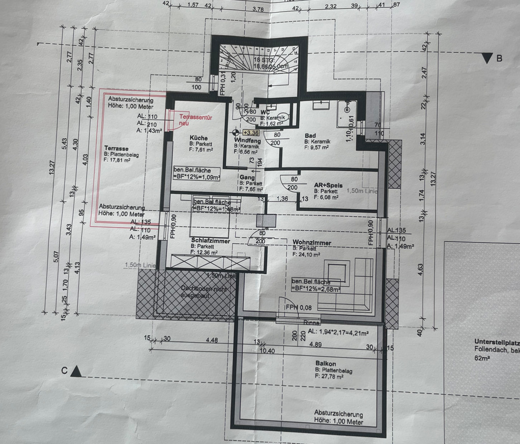 Beim Eingang des Hauses befindet man sich direkt im Stiegenhaus, wovon man das Erdgeschoss erreicht als auch in das ausgebaute Obergeschoss gelangt.