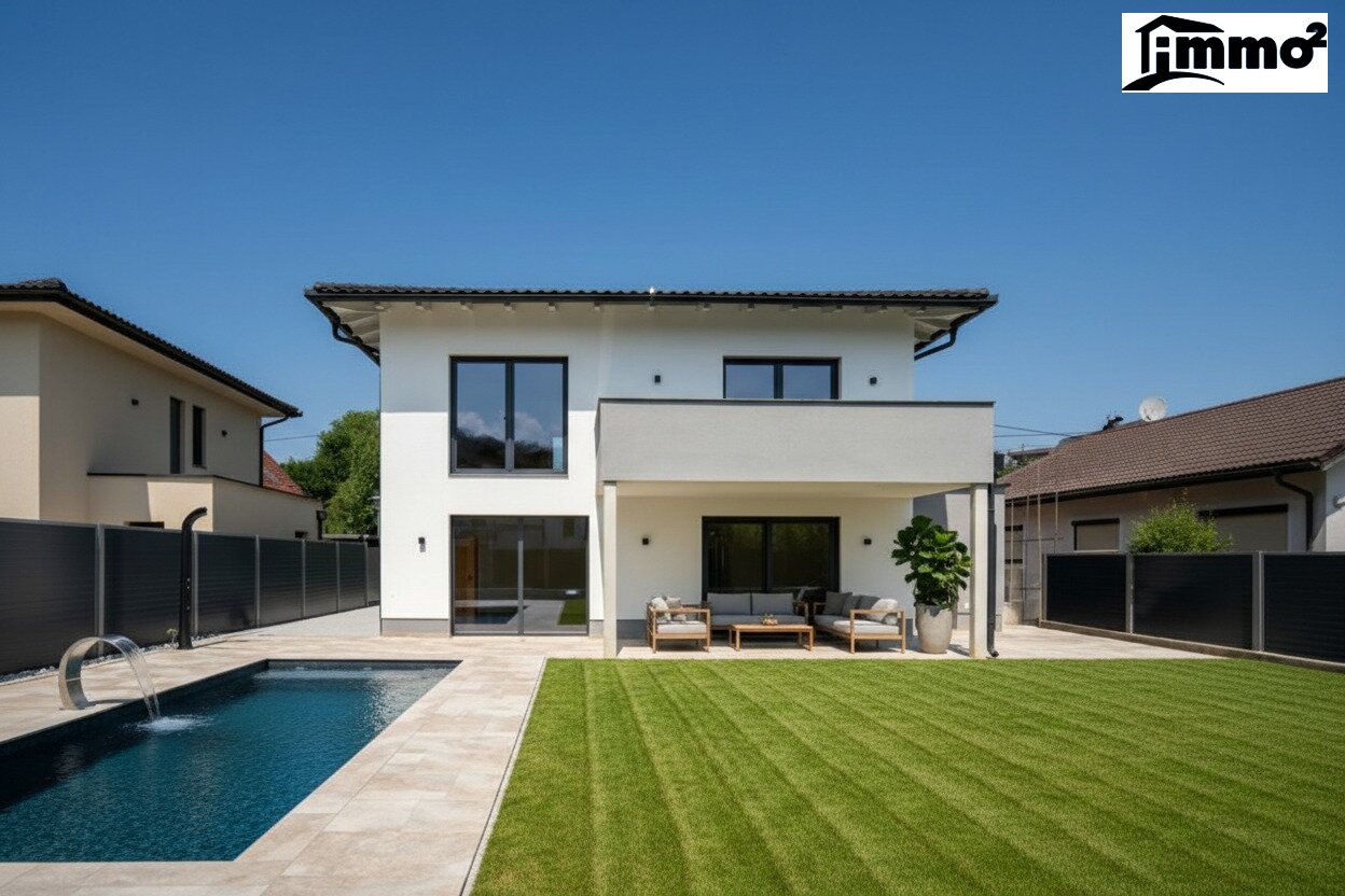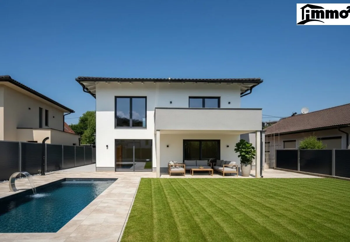 hochwertige Bauqualität, durchdachte Raumaufteilung, energieeffiziente Technik und einen exklusiven Garten mit Swimmingpool