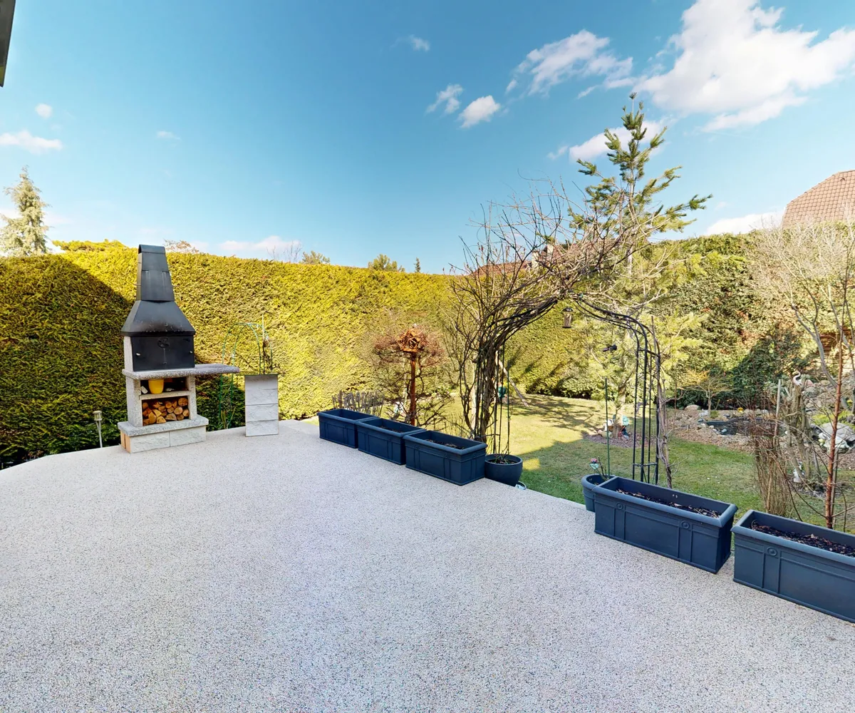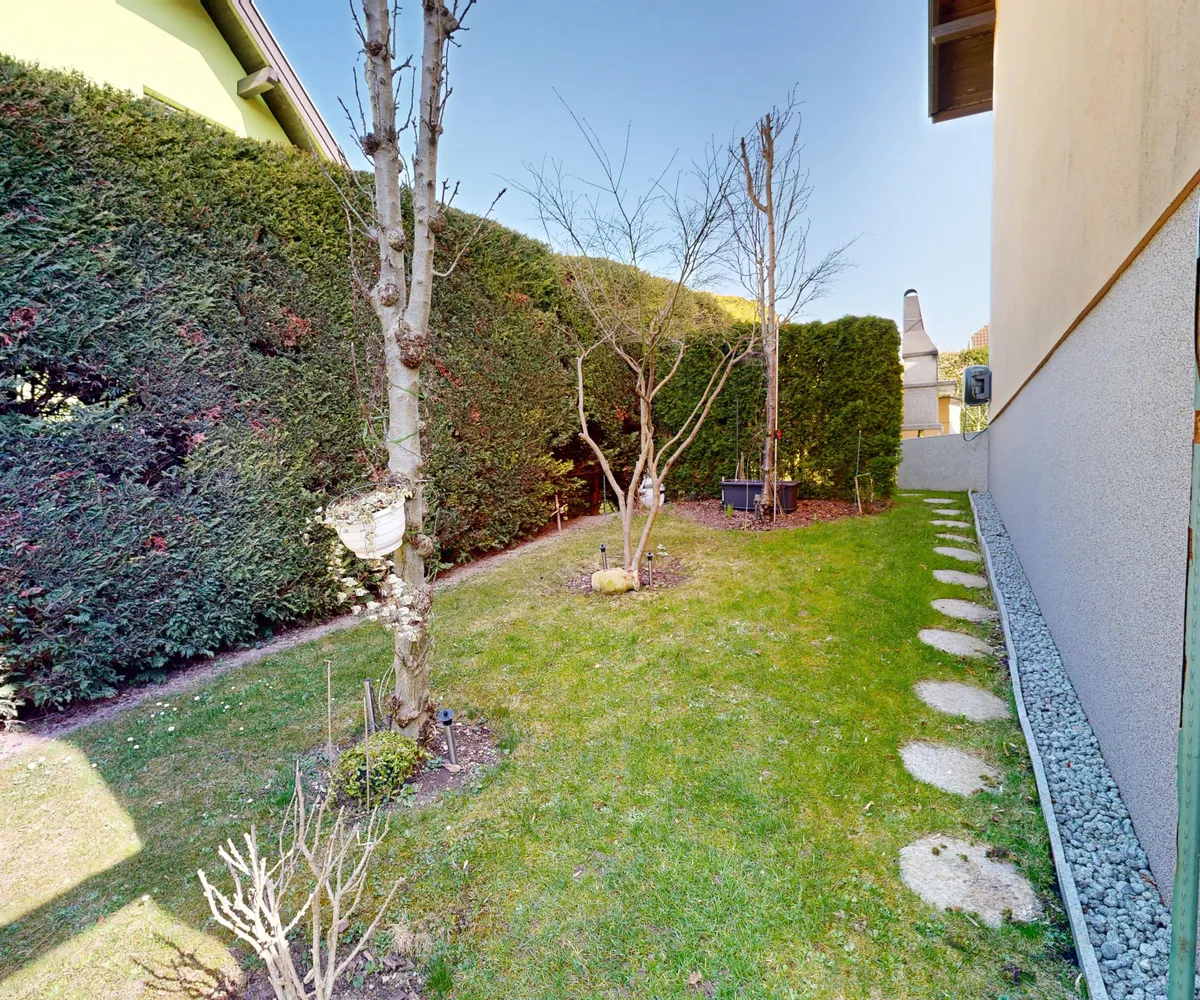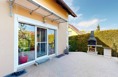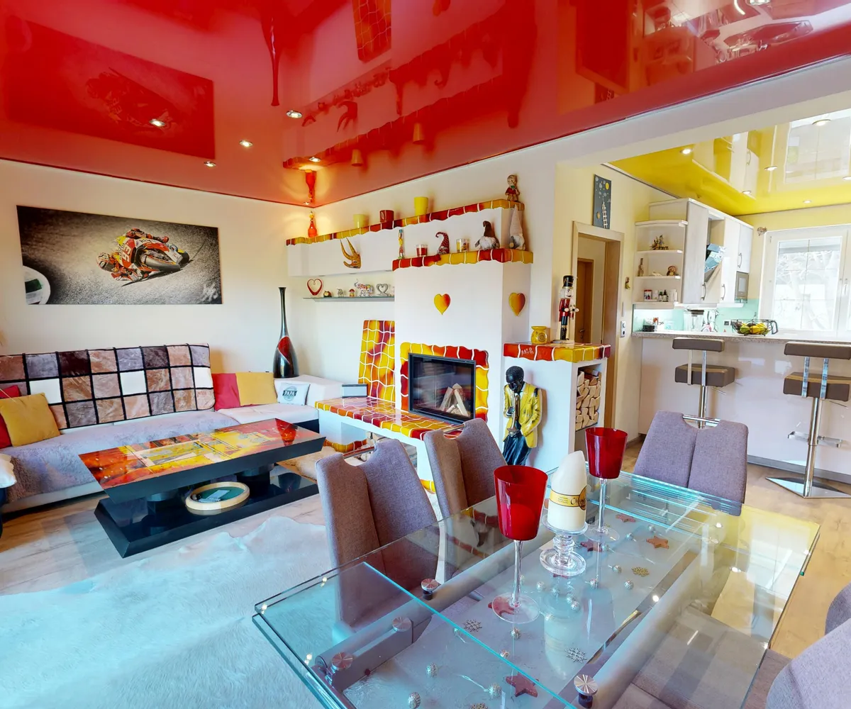 Der Blick aus den Fenstern ist ein weiteres Highlight dieser Immobilie. Sie genießen einen wunderbaren Grünblick, der Ihnen jeden Tag das Gefühl von Ruhe und Entspannung schenkt. Die Terrasse und der uneinsehbare Garten laden dazu ein, die Natur zu genießen und im Sommer gemütliche Grillabende zu verbringen. Alle Türen sind von Portas und mit hochwertigen Spezialgläsern versehen. Der Kamin ist eine Spezialanfertigung von Plöderer und besteht aus gebrannten Keramikfliesen (Heutiger Neupreis ca. 15.000€). Das Haus ist mit Hochglanz Spanndecken von Portas mit eigenem Lichtsystem ausgestattet. Im Schlafzimmer befinden sich Hochglanz Schiebetüren (ebenfalls von Portas - Wert ca. 7.000€). 2022 wurden Ausmalarbeiten durchgeführt und das neue Lichtsystem installiert.