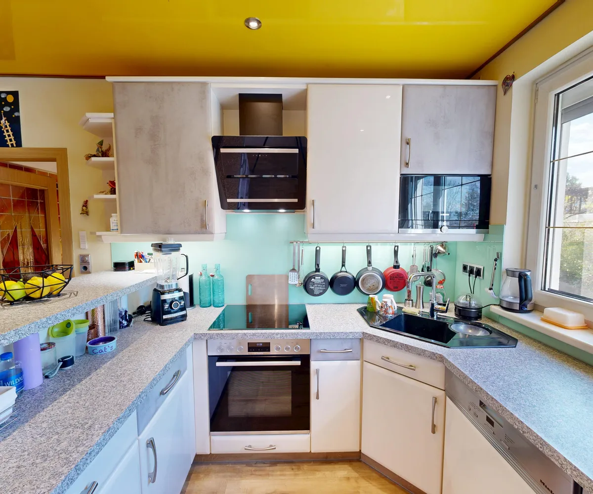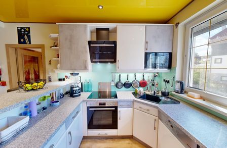 Auf insgesamt fünf Zimmern finden Sie ausreichend Platz für Ihre Familie oder auch für ein Homeoffice. Besonders hervorzuheben ist der offene Wohn- und Essbereich, der mit einem wunderschönen Vinylboden ausgestattet ist und viel Platz für gemütliche Stunden mit Ihren Liebsten bietet. Die angrenzende Wohnküche lässt keine Wünsche offen und ist mit modernen Einbaugeräten ausgestattet. Hier können Sie gemeinsam kochen und die Mahlzeiten direkt im Essbereich oder auf der Terrasse genießen.
