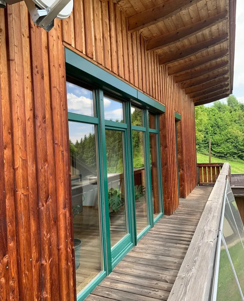 Patentiertes Öko Massiv Holz Haus THOMA Holz 100 ( Hochwertige Natur Materialien und die enorme Holz Masse wirkt im Sommer als kostenlose und natürliche Klimaanlage und im Winter als Wärmespeicher, ist Kondensations- und Schimmelbildungssicher, Winddicht, Wärme und Schalldämmend.