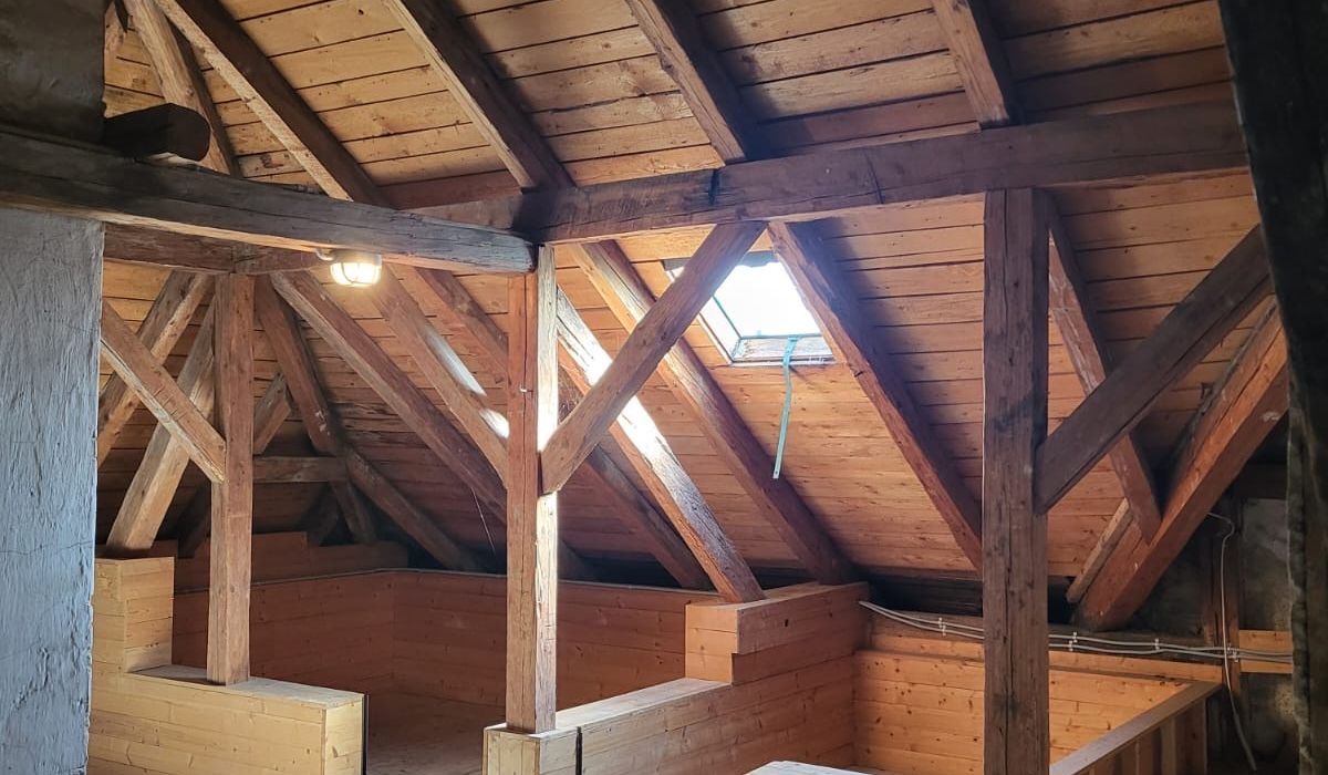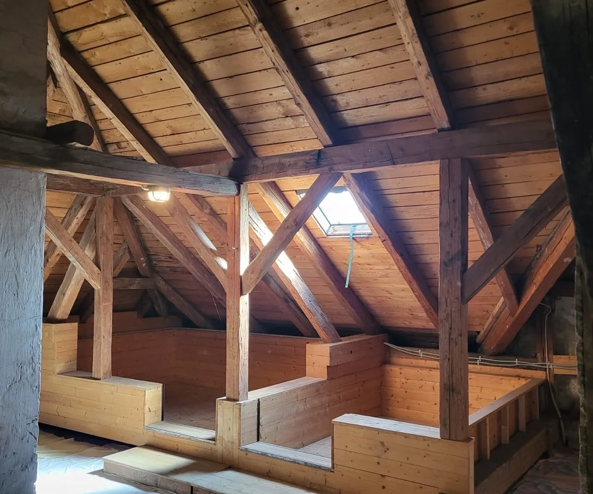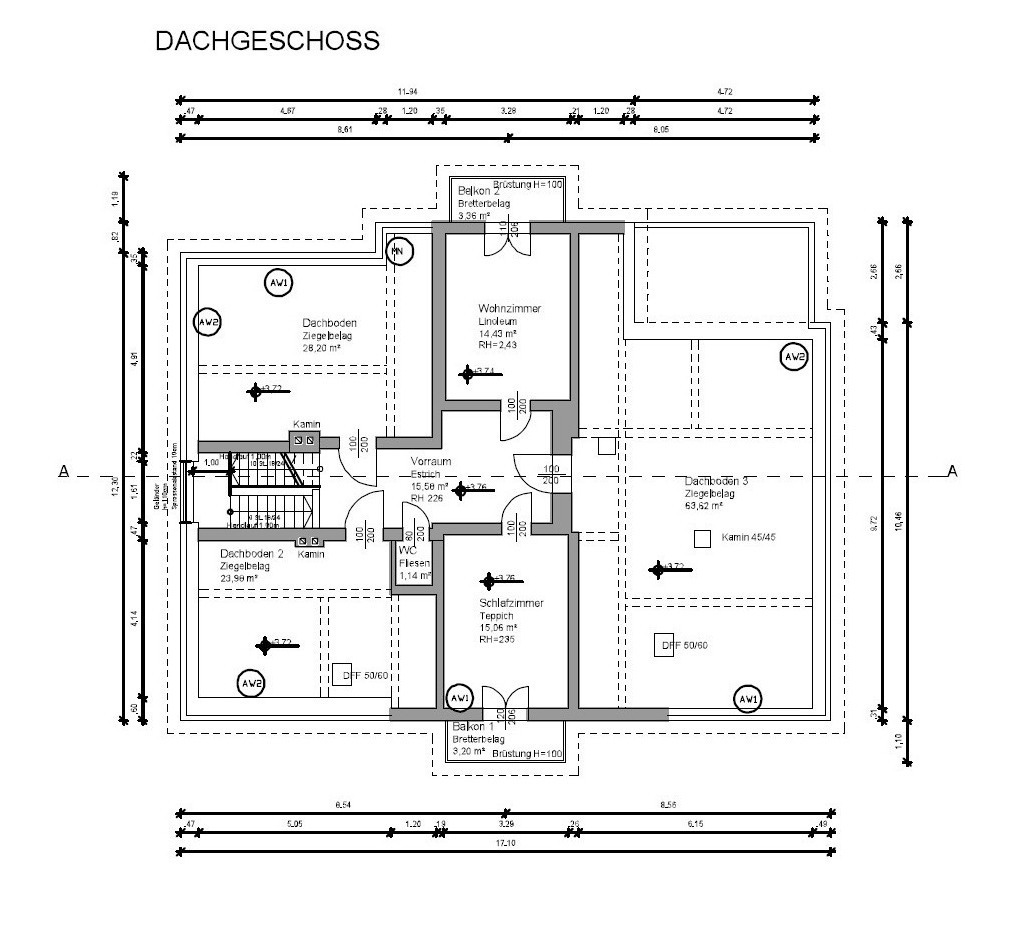 Über die vom Vorraum aus erreichbare Treppe gelangt man in das Dachgeschoss, welches zusätzliche, flexibel nutzbare Flächen bietet: Hier befinden sich ein weiteres Schlafzimmer mit ca. 15 m², ein zusätzliches Wohnzimmer mit rund 14 m² sowie ein separates WC. Sowohl das Schlafzimmer als auch das Wohnzimmer verfügen über jeweils einen Balkon mit etwa 3 m² – perfekt für ruhige Momente im Freien.