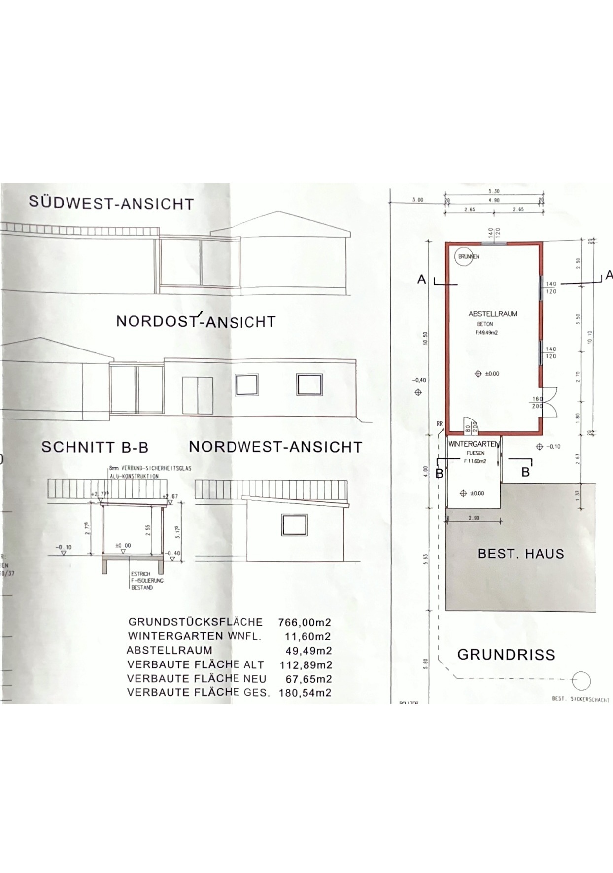 Aufteilung: Vorzimmer, großes Wohnzimmer, Esszimmer, Küche, Schlafzimmer, Kinderzimmer, Wintergarten, Bad und 2x WC.