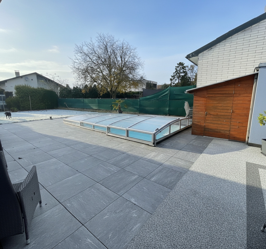 Das Einfamilienhaus liegt auf einem ca. 766qm großen Grundstück in L-Format erbaut und besteht aus 2 Baukörper.