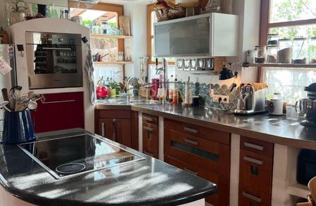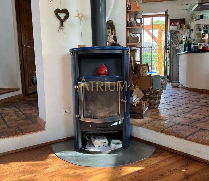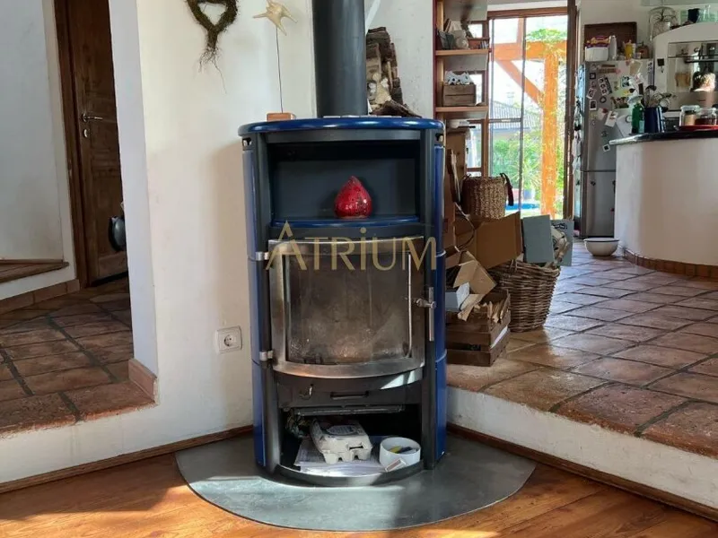 Offener Wohnbereich mit Küche, Esszimmer & Schwedenofen
