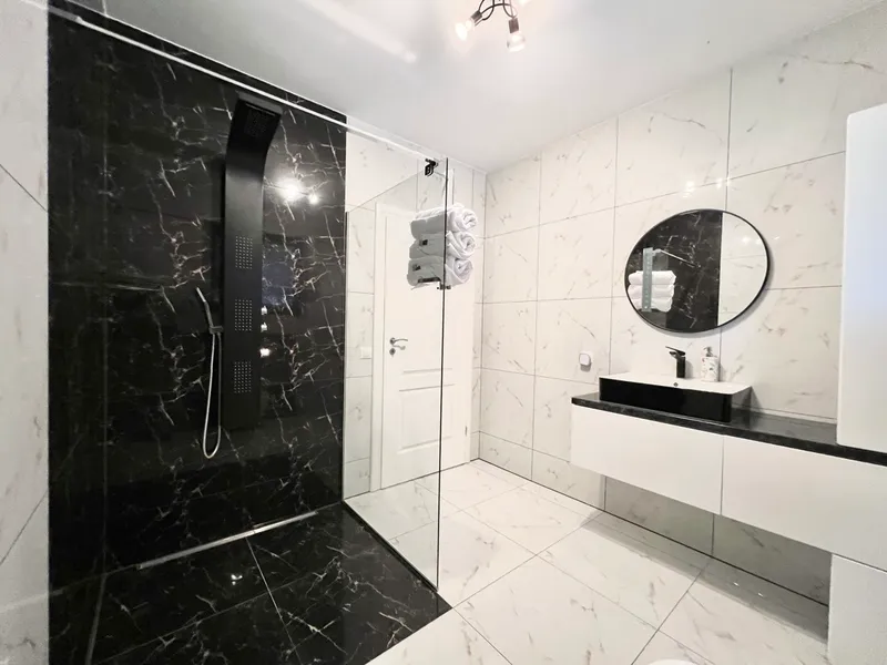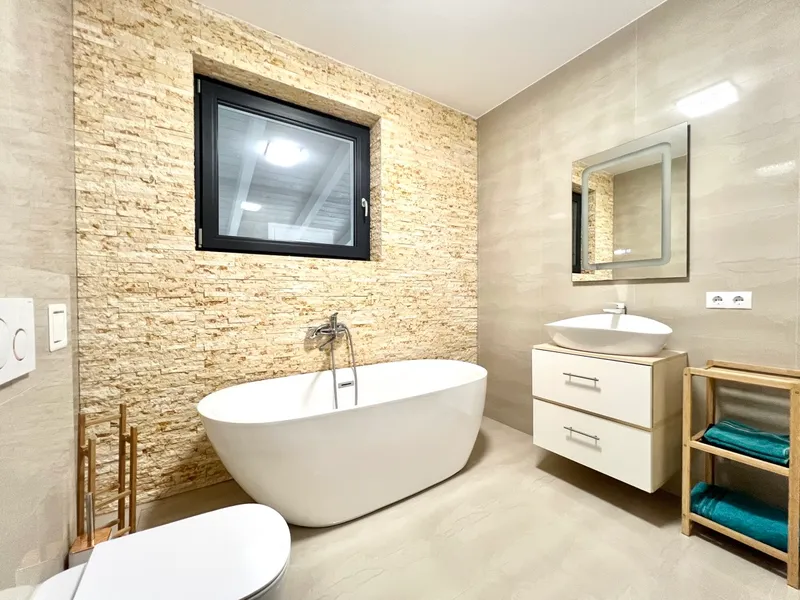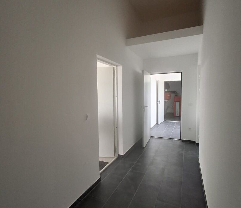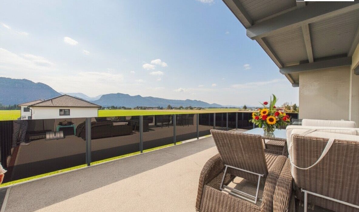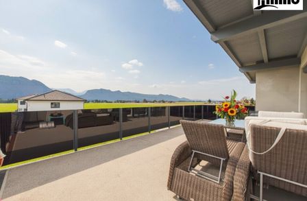 Ein weiteres Highlight ist die großzügige Terrasse, die direkt an den Wohnbereich anschließt. Sie erweitert den Wohnraum nach außen und bietet einen schönen Platz für entspannte Stunden im Freien.