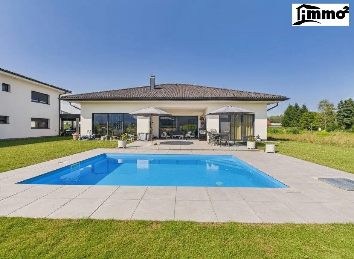 Schon beim Betreten spürt man die Großzügigkeit und Harmonie dieses Hauses. Der offene Wohn-Essbereich bildet das Herzstück und lädt mit Kamin, großen Fensterflächen und direktem Zugang zur Terrasse zum Verweilen ein. Die Südterrasse und der gepflegte Garten mit Pool erweitern den Wohnraum nach draußen und schaffen einen perfekten Ort für entspannte Sommertage, Familienfeste oder ruhige Abende im Grünen.